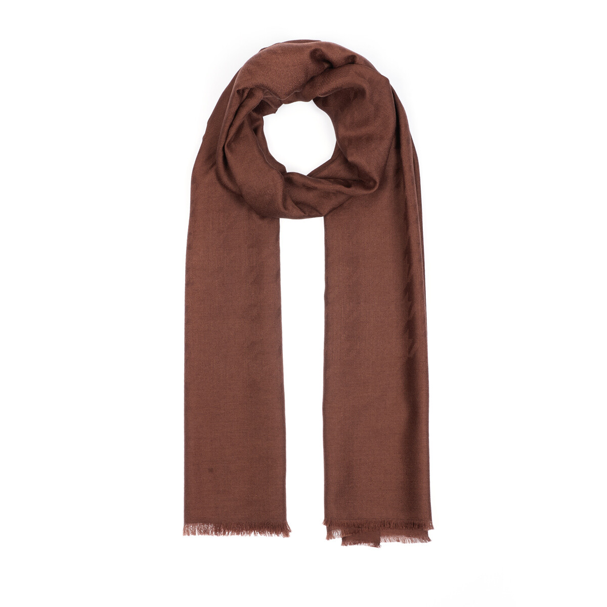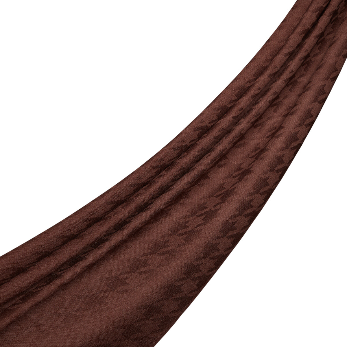 Acı Kahve Kaz Ayağı Desenli Yün İpek Dar Fular