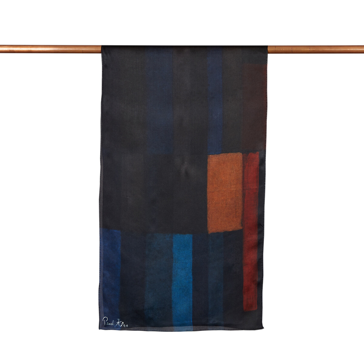Akşam Ateşi adlı eserinde birçok renkten oluşan dikdörtgen ve karelerin üst üste dizildiği, ilk bakışta renk cümbüşü gibi göründüğü gözlenir. Fakat ismi ile değerlendirildiğinde soyutlanmış bir eserin aynı zamanda gerçekliği yansıttığı gözler önüne serilmektedir.Klee, bu eserinde Mısır’a yaptığı yolculukta Nil Vadisi’nde gördüğü işlenmiş tarlaları resmetmiştir.%100 İpek55x180 cmArt Koleksiyonu