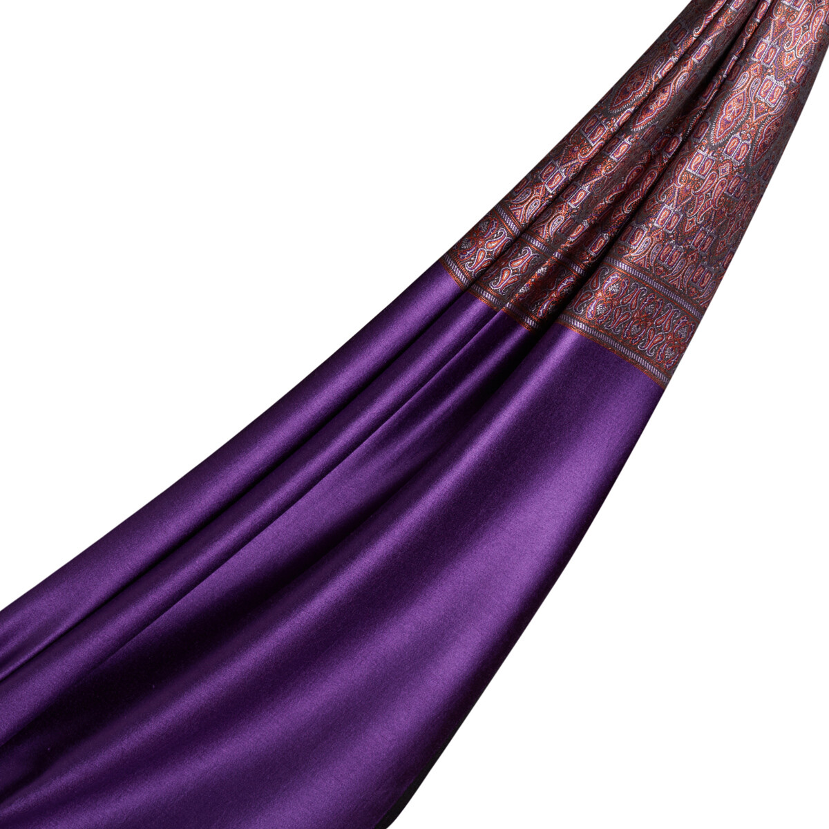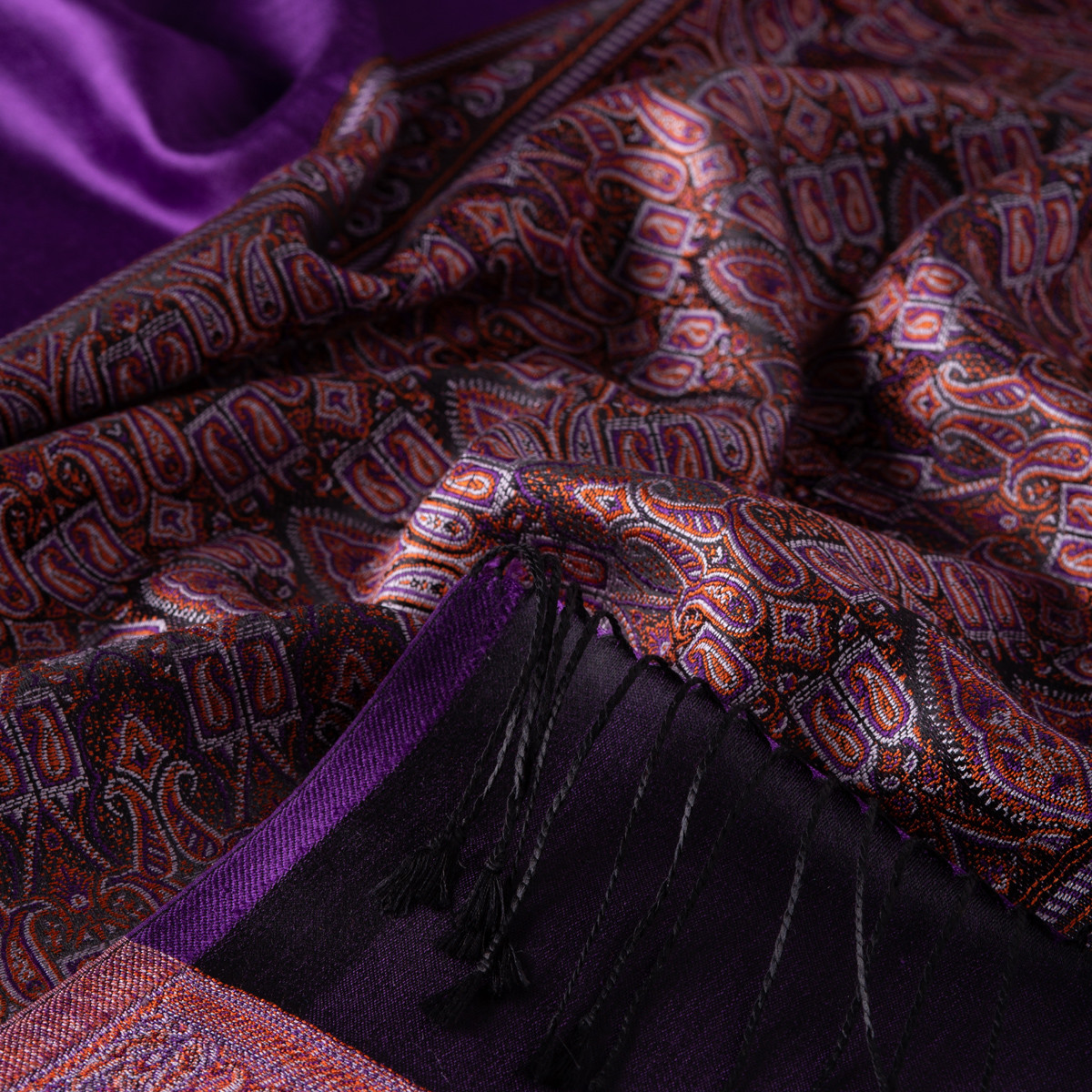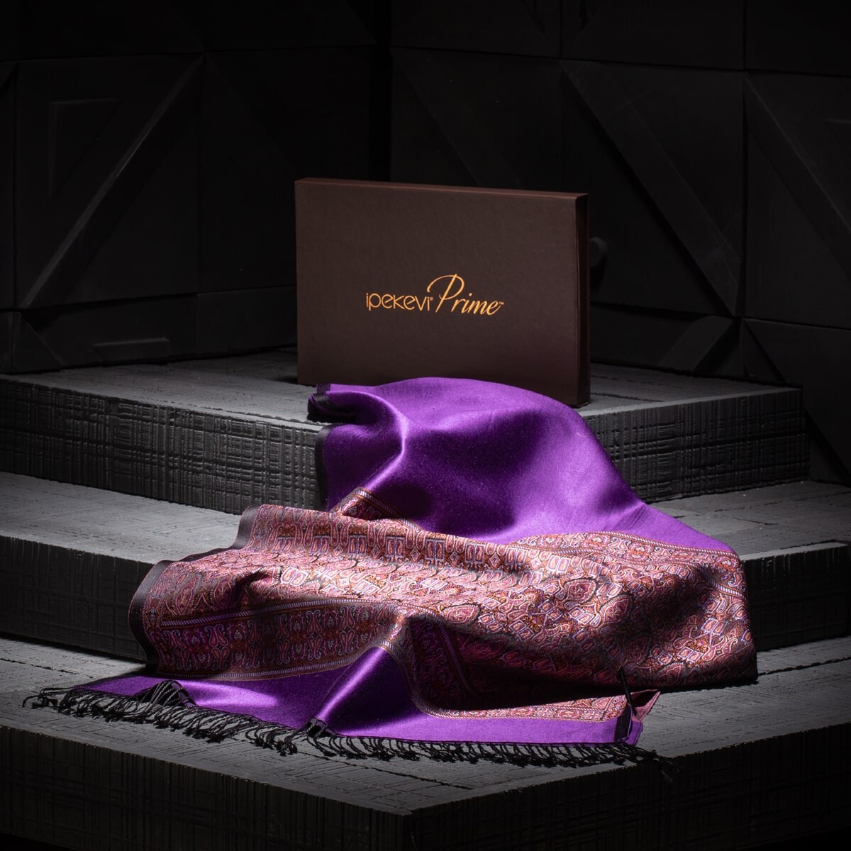 شال حرير جاكار فاخر منسوج يدويًا لون بنفسجي