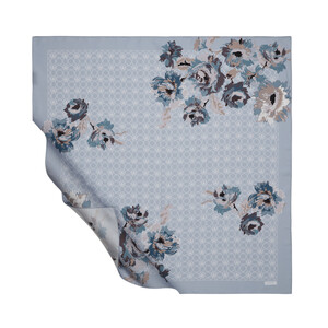 Baby Blue Peony Monogram Print Silk Twill Scarf