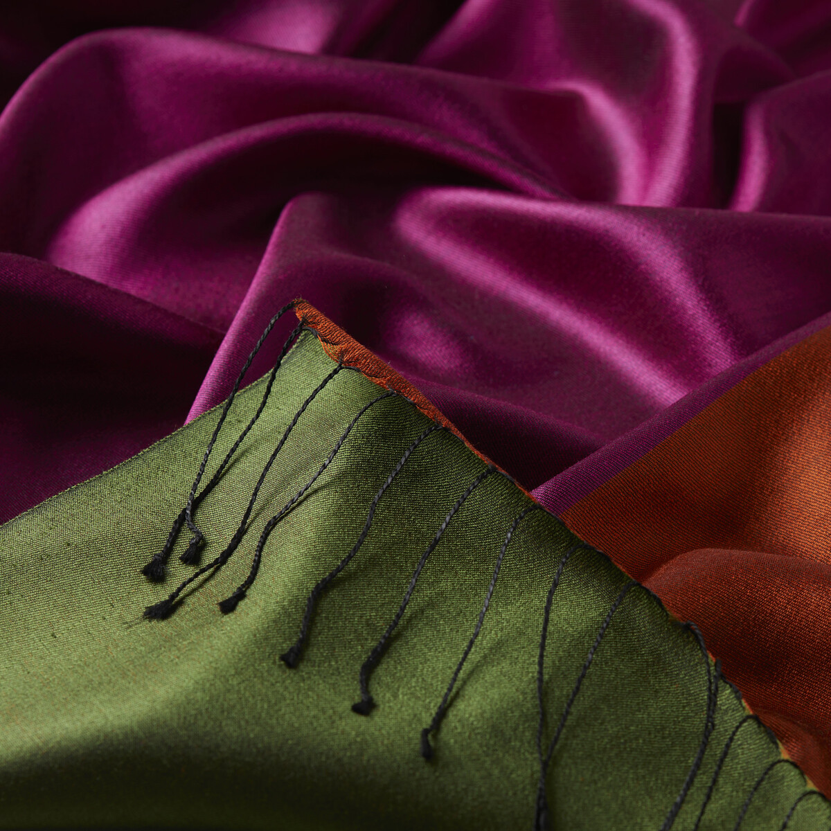 شال حرير فاخر ذو وجهين لون بنفسجي وأزرق