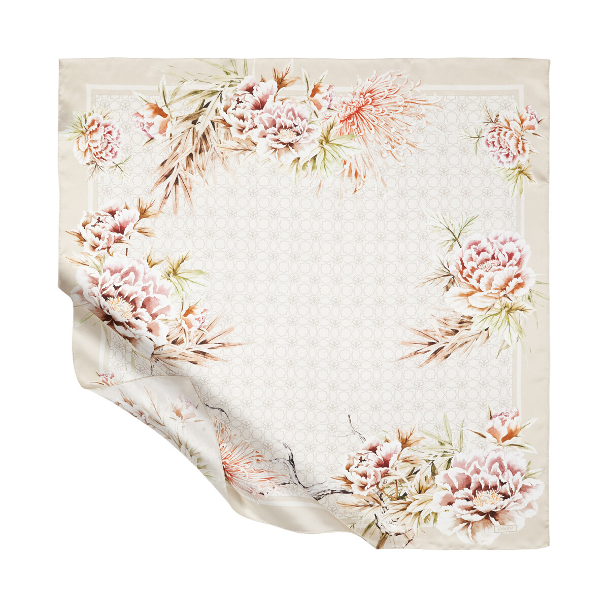 Bej Fuji Monogram Desenli Tivil İpek Eşarp
