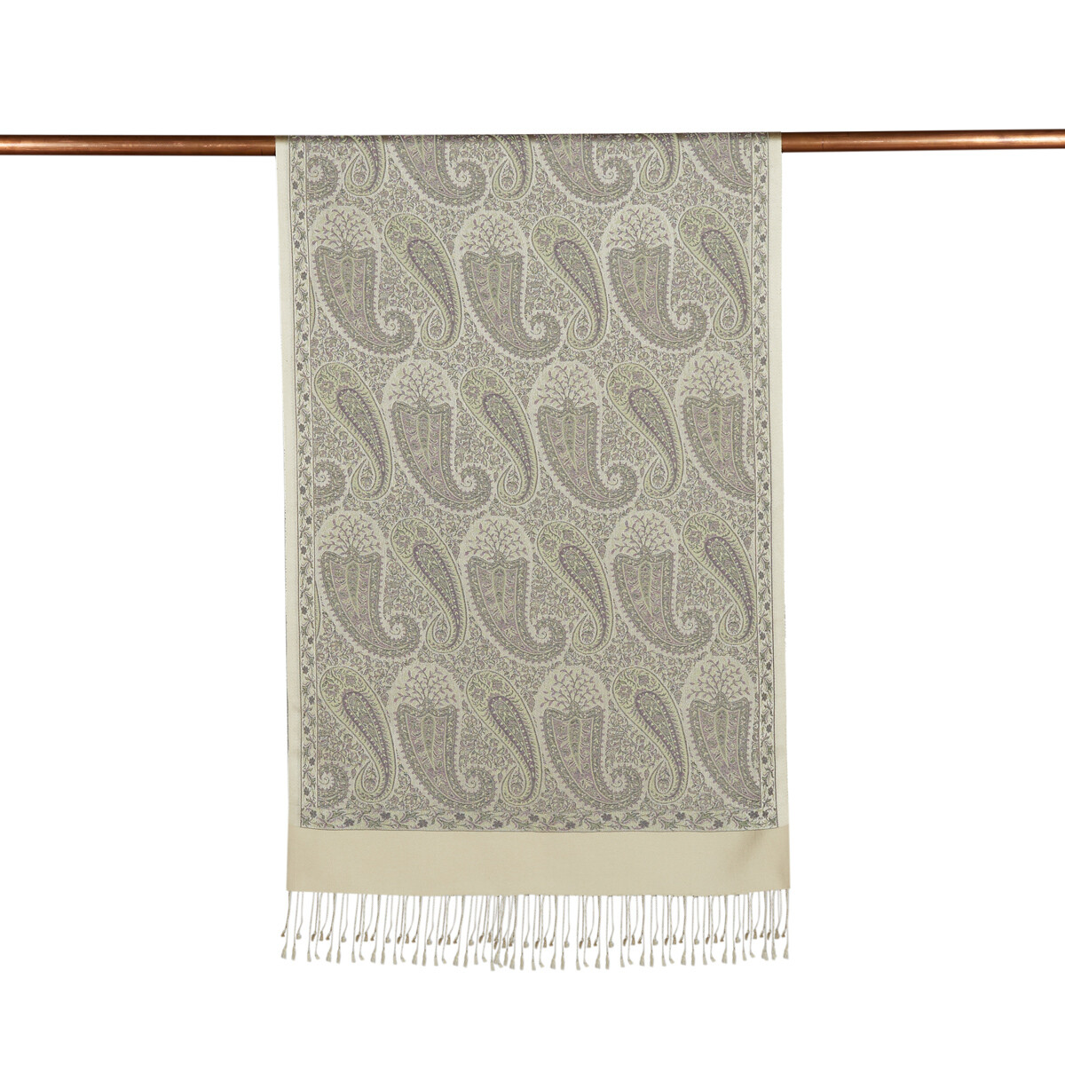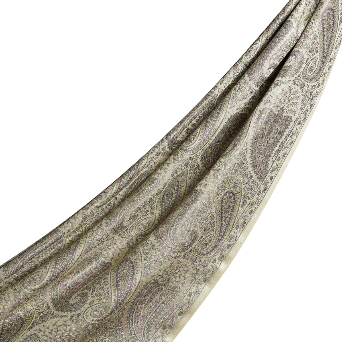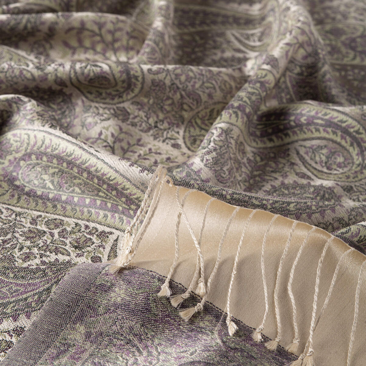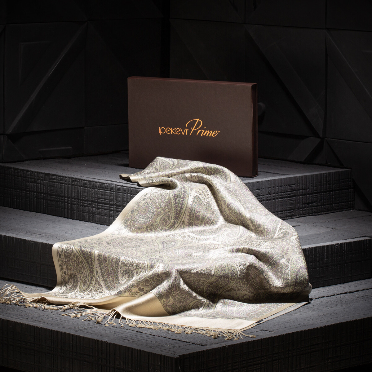 شال حرير جاكار فاخر منسوج يدويًا لون بيج
