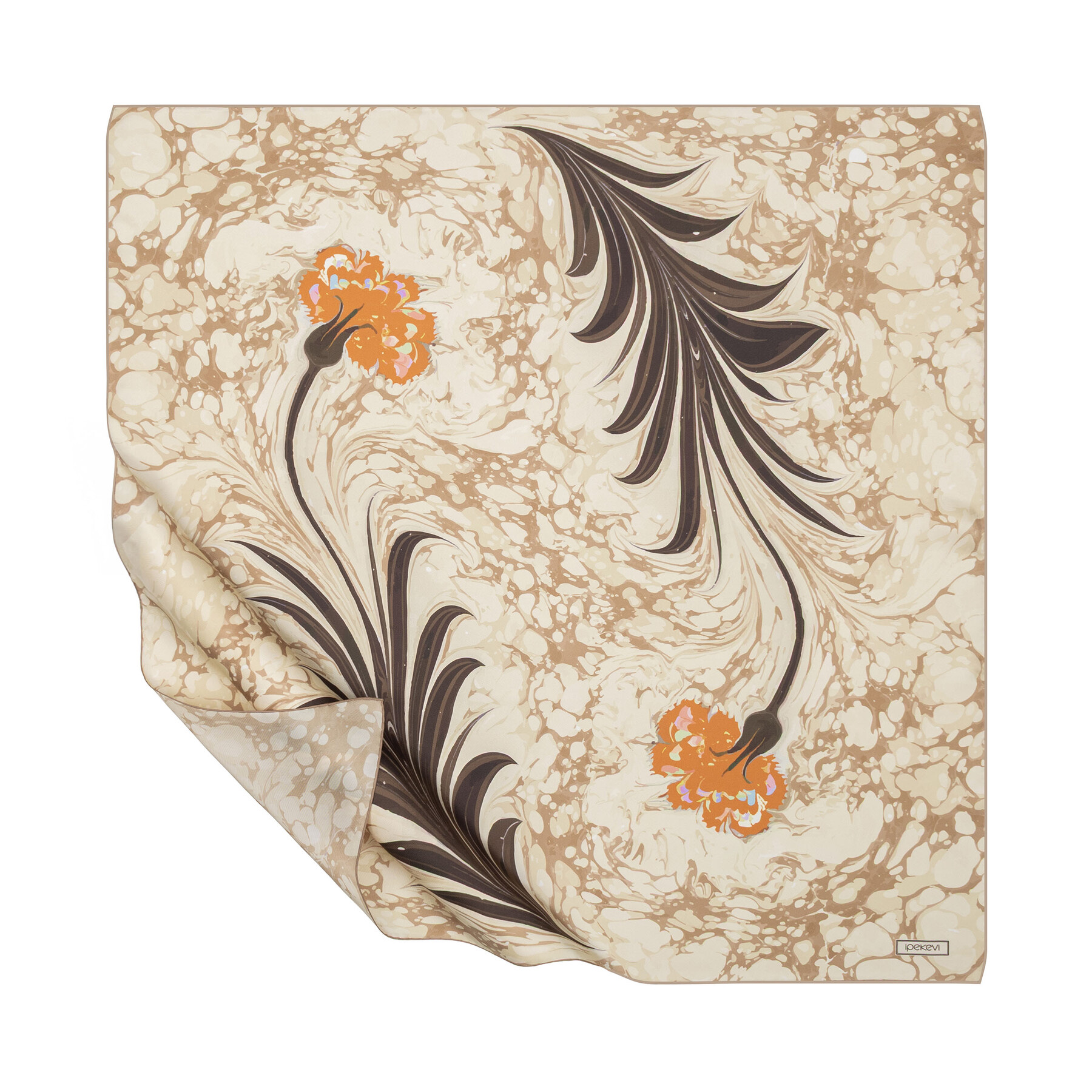 Bej Karanfil Ebru Tivil İpek Eşarp