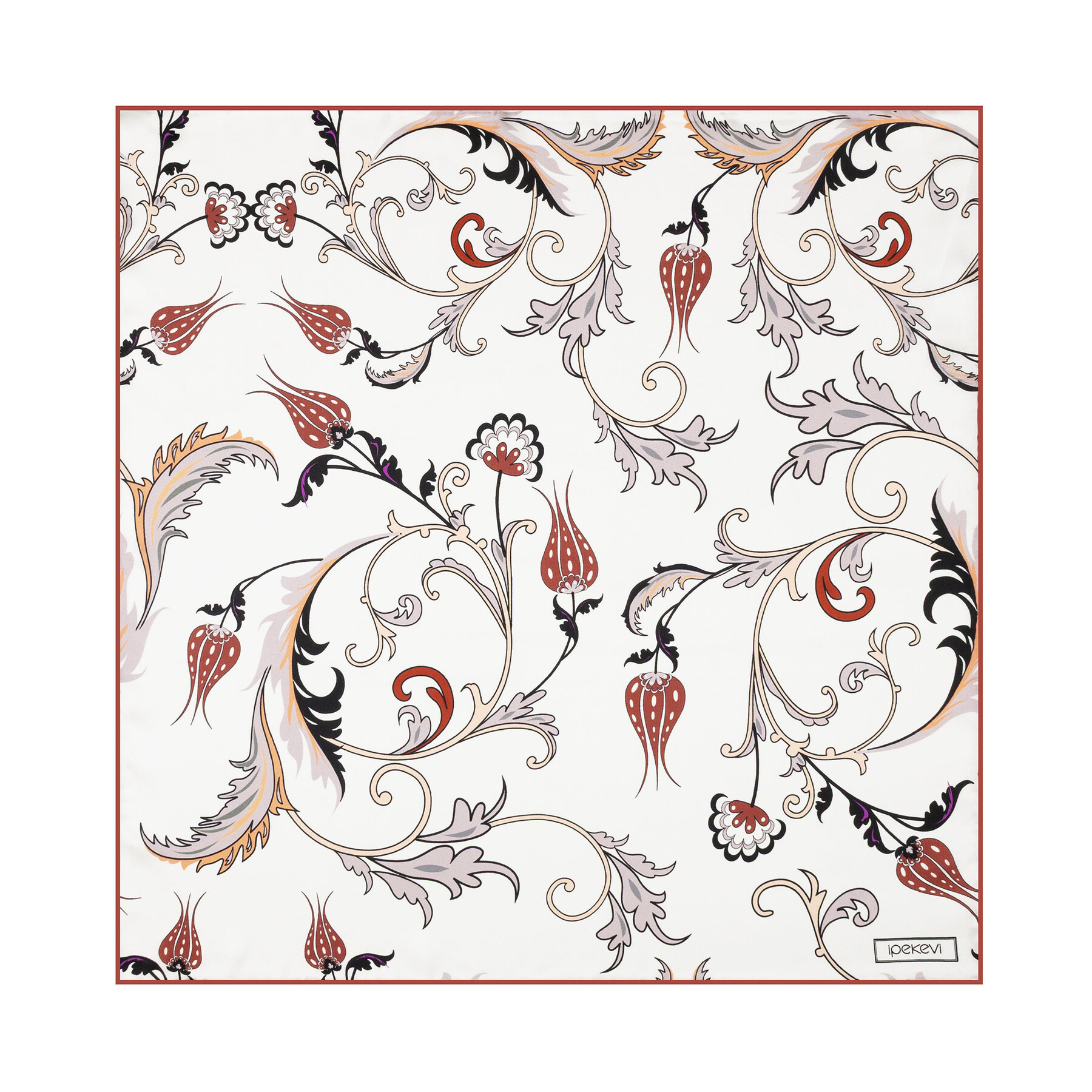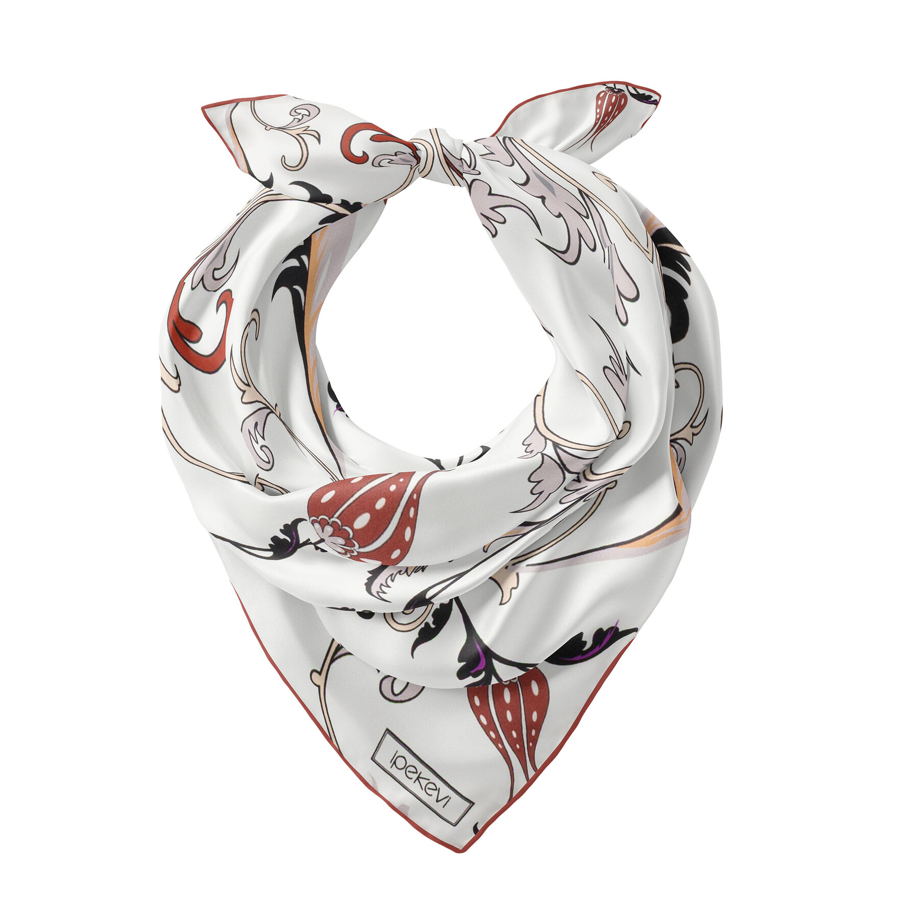 Beyaz Bakır Yıldız Şale Saten İpek Mendil