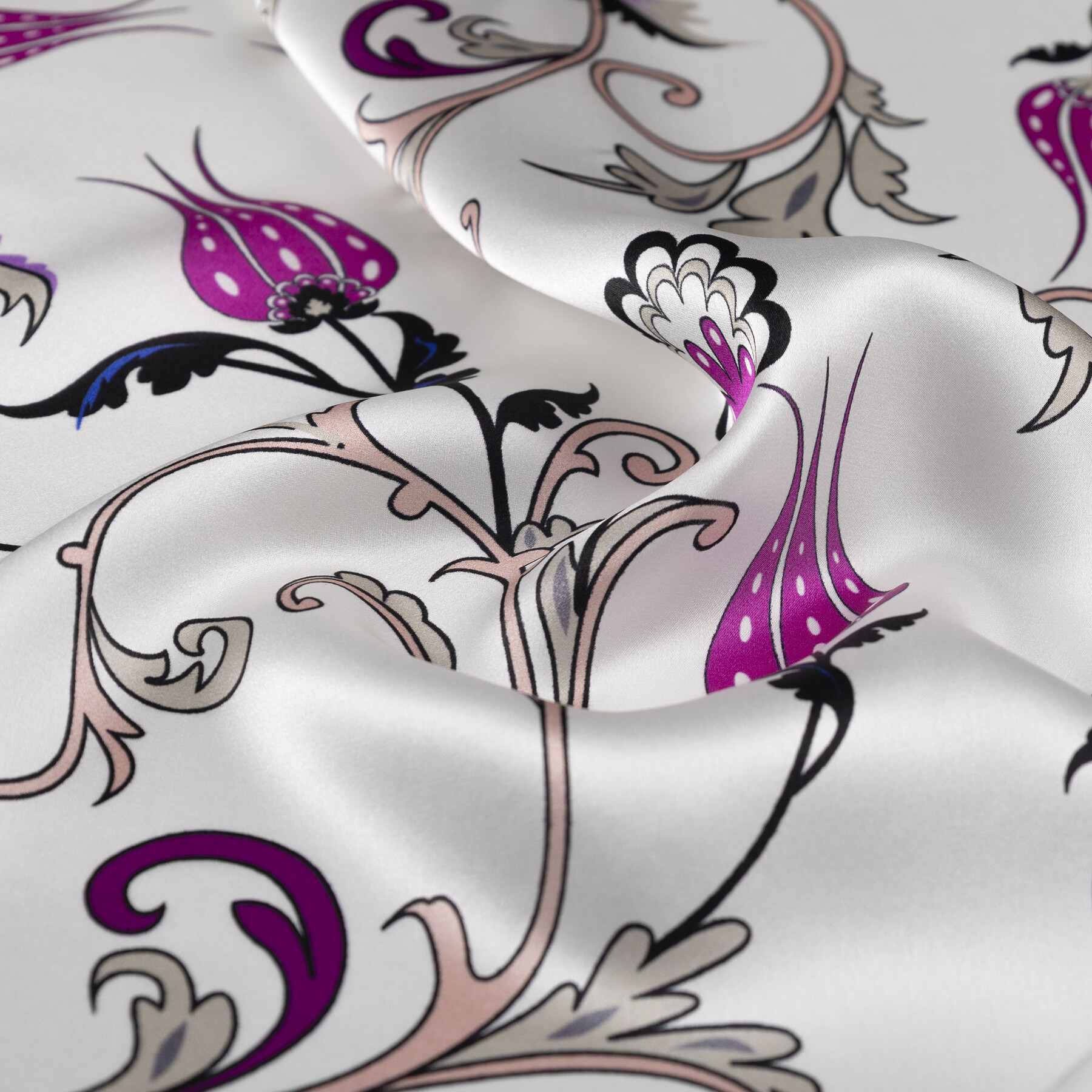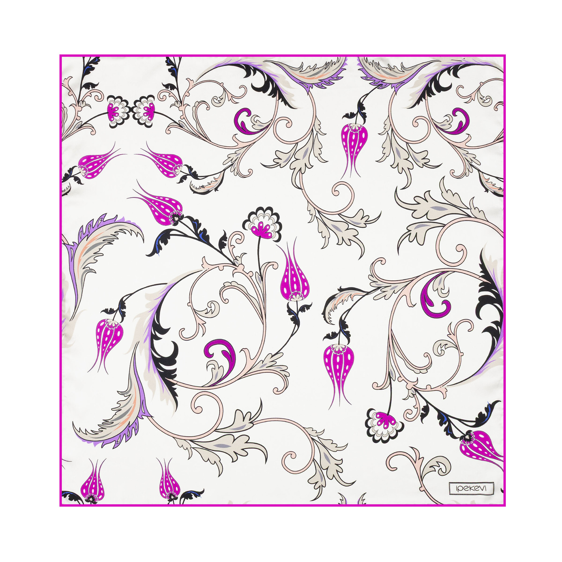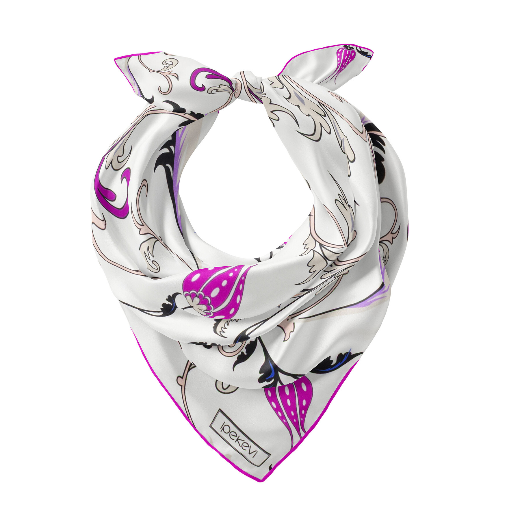 Beyaz Fuşya Yıldız Şale Saten İpek Mendil