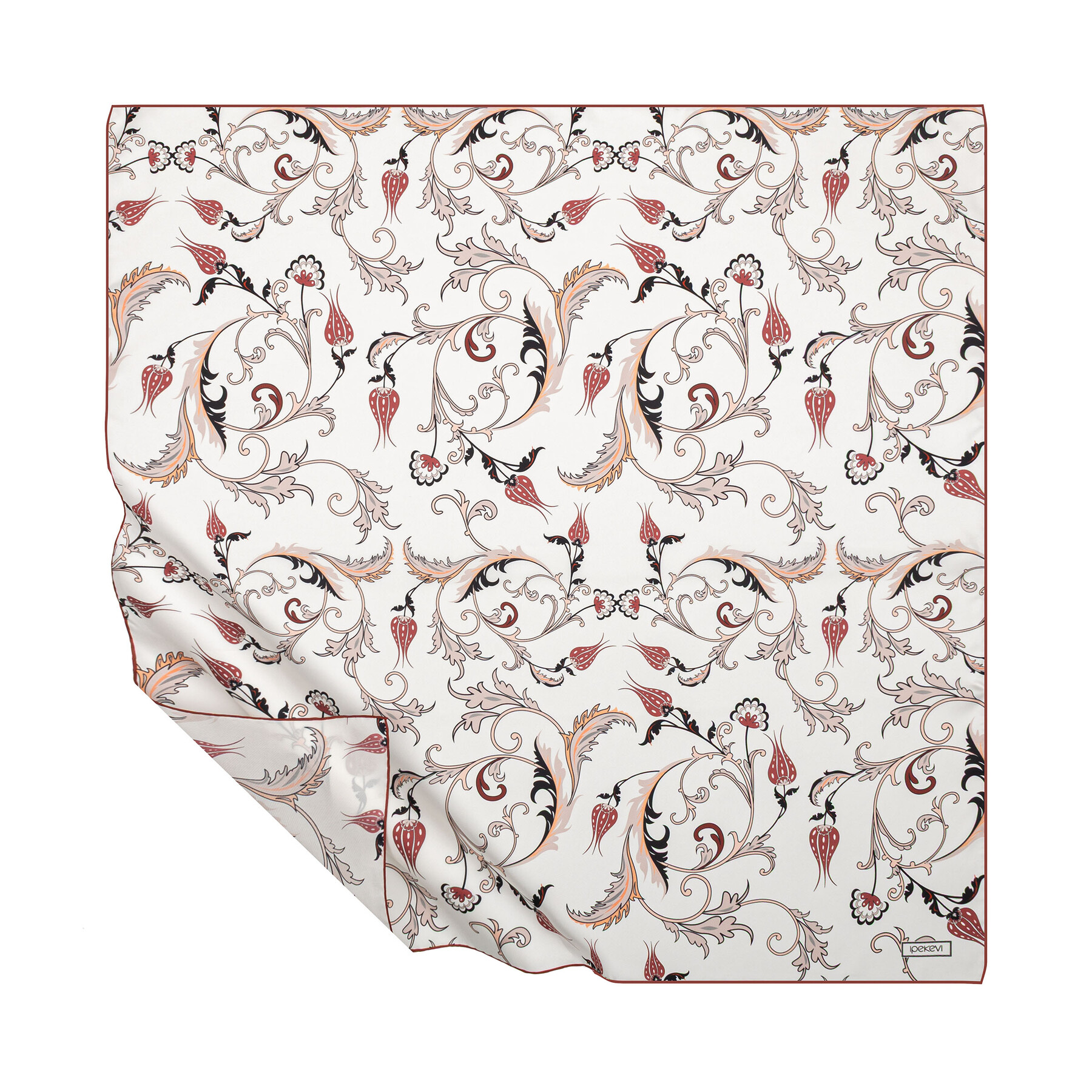 Beyaz Kızıl Bakır Yıldız Şale Tivil İpek Eşarp