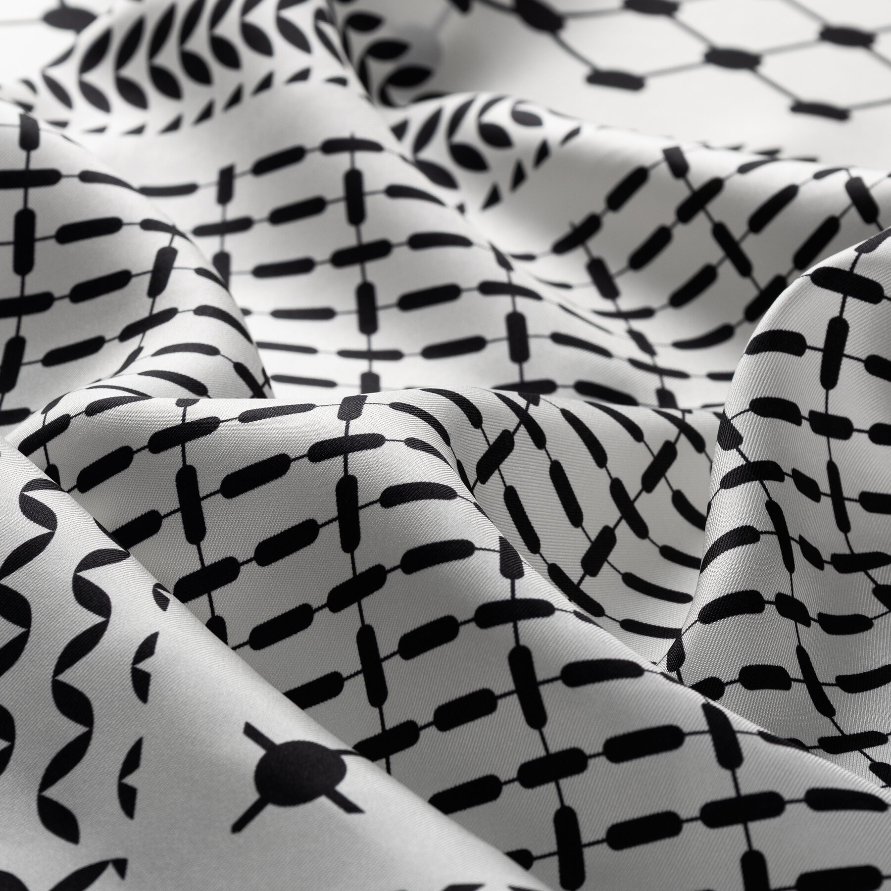 Beyaz Siyah Kefiye Tivil İpek Eşarp