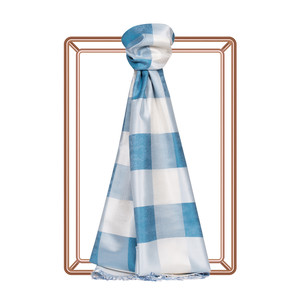 Beyaz Turkuaz İskoç Desenli İpek Şal