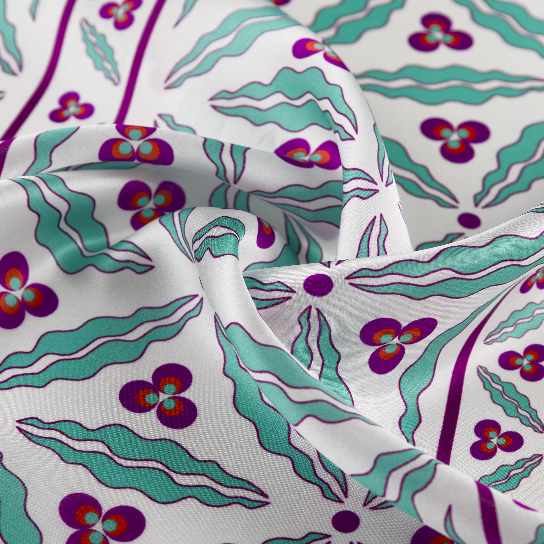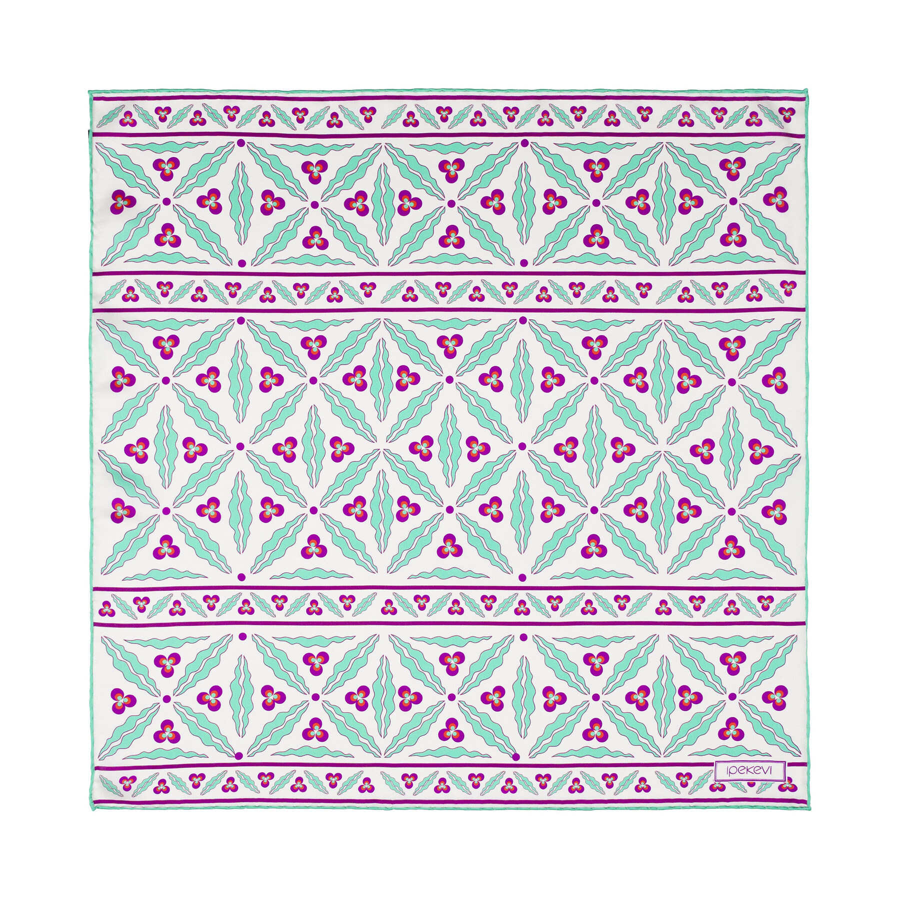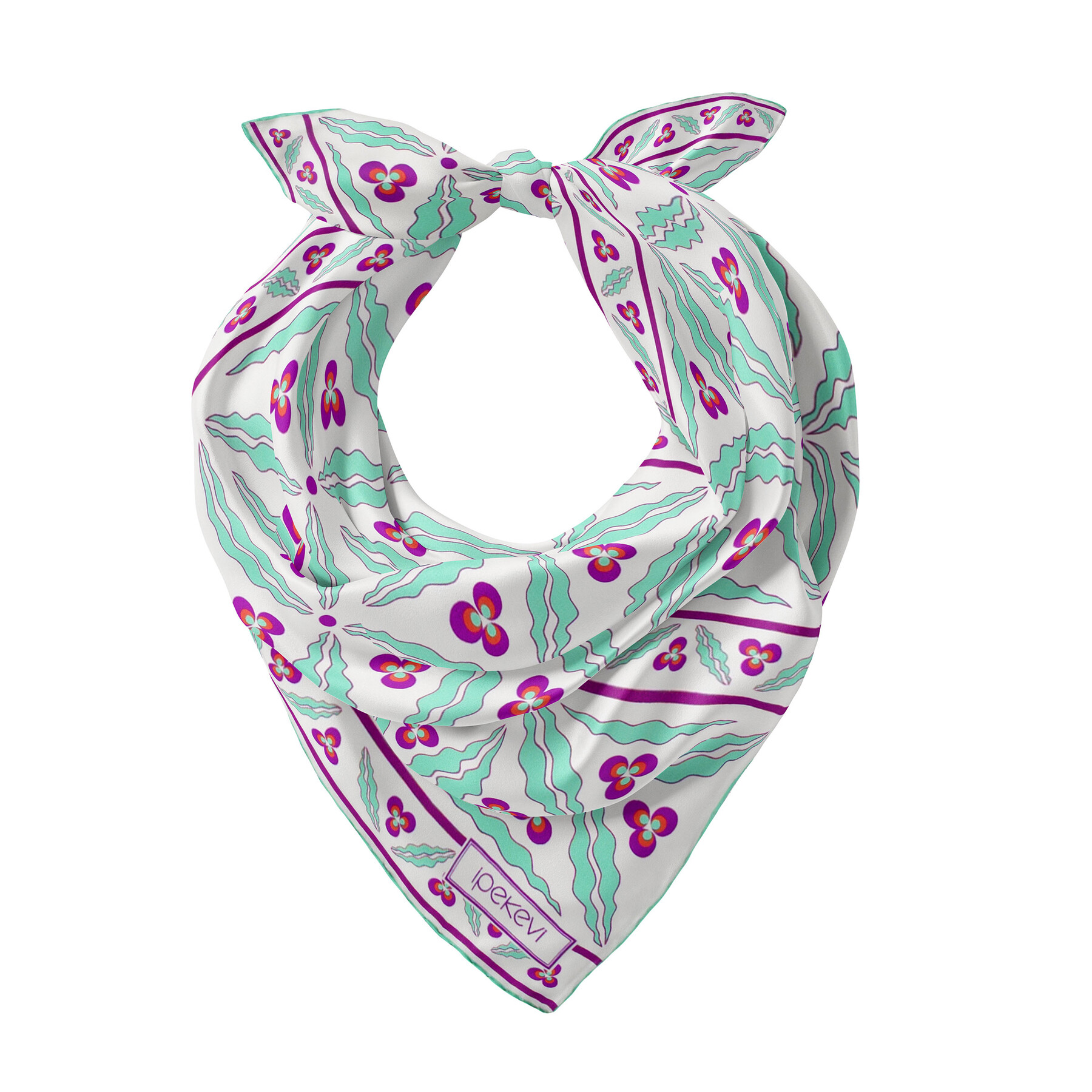 Beyaz Turkuaz Kütahya Çintemani Saten İpek Mendil