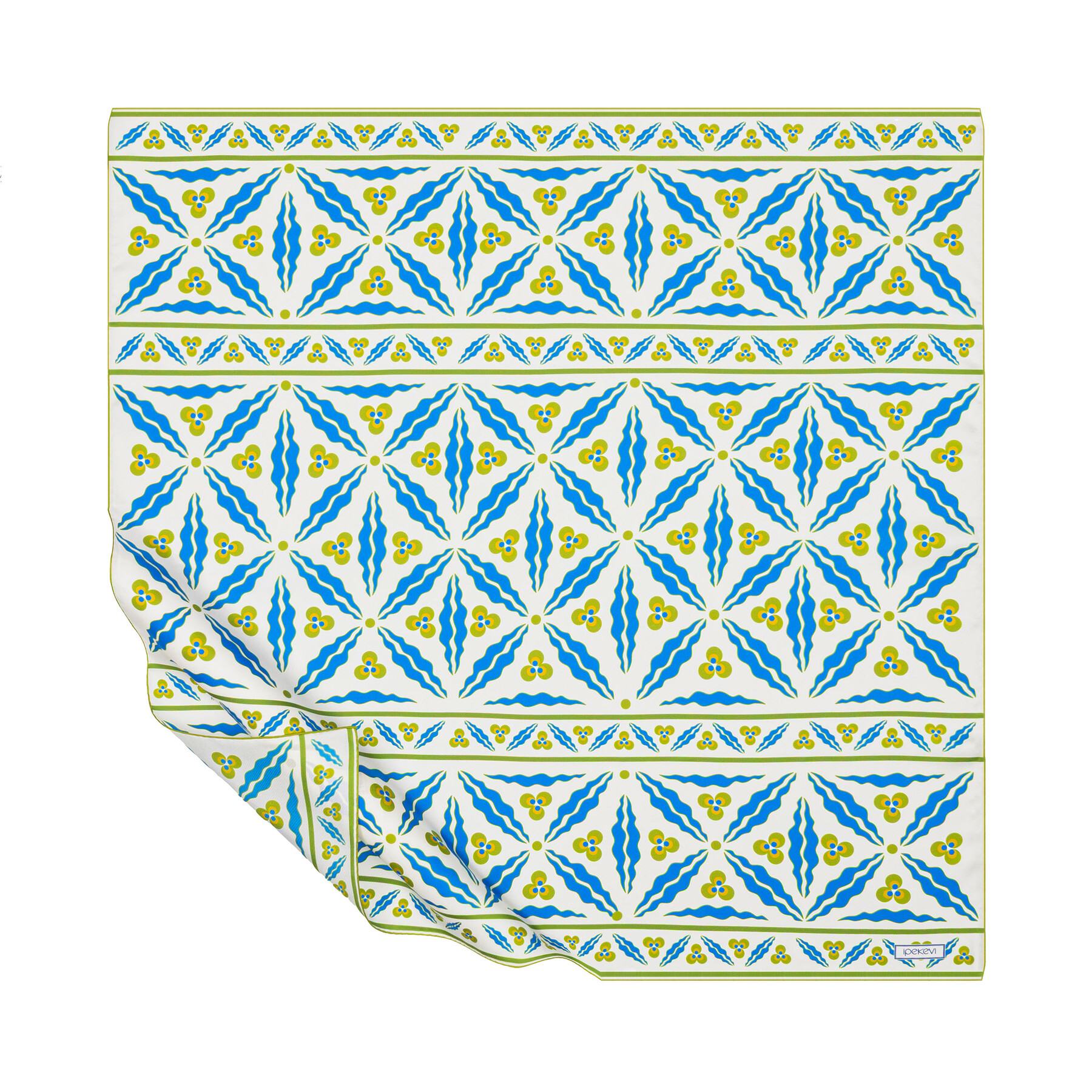 Beyaz Yeşil Kütahya Çintemani Tivil İpek Eşarp