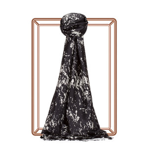 شال حرير بتصميم رخامي لون أسود وأبيض