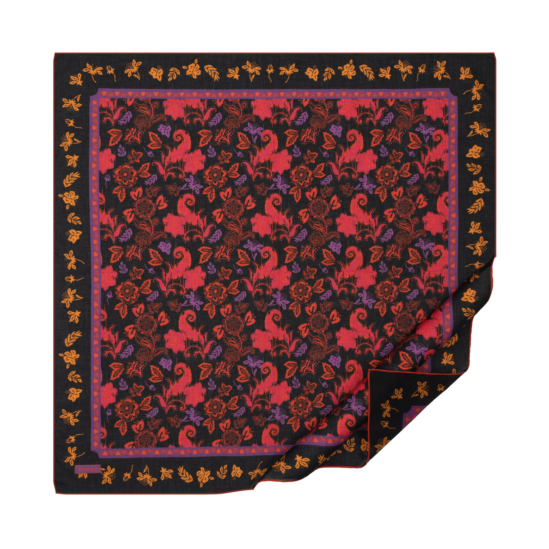 Black Imperial Garden Cotton Scarf
