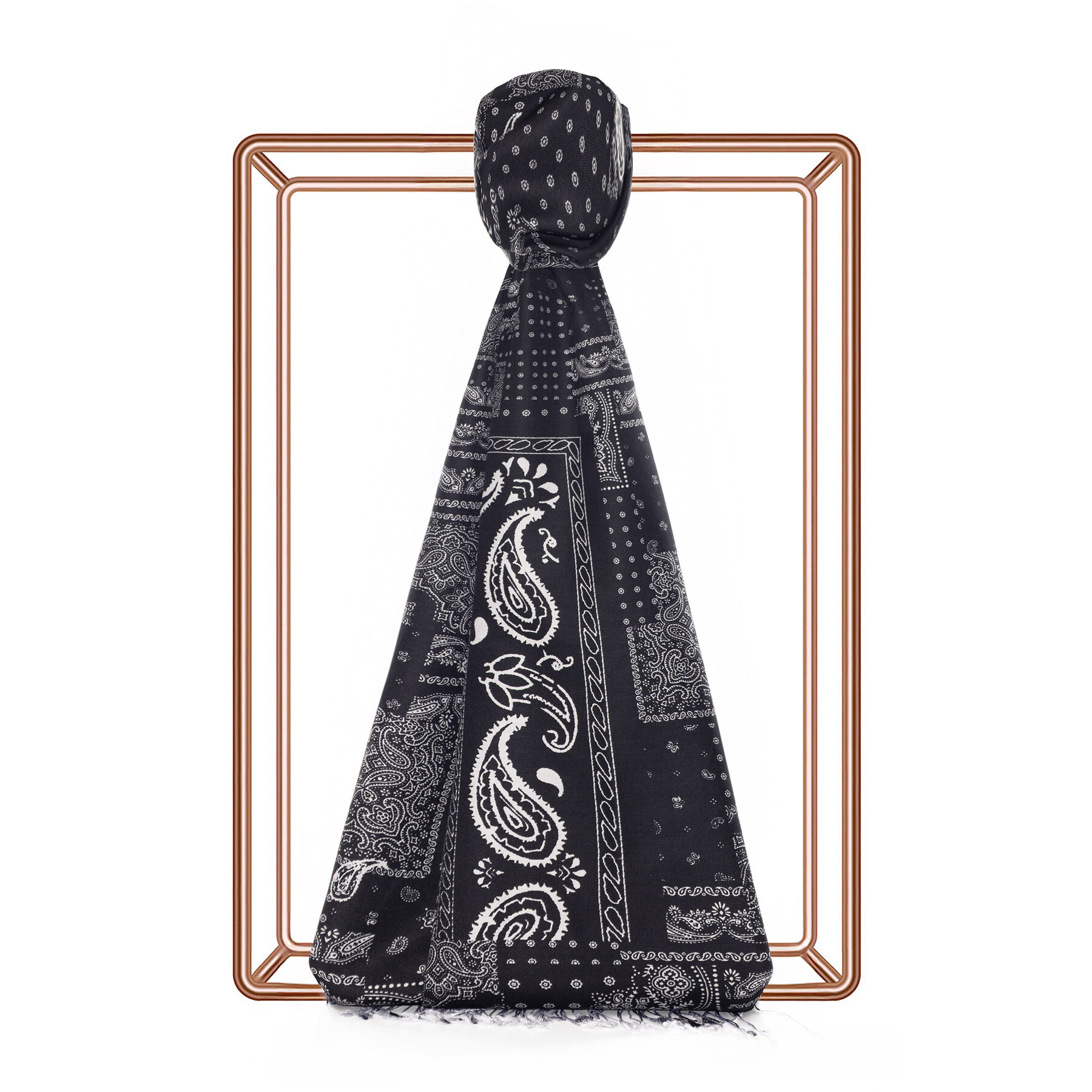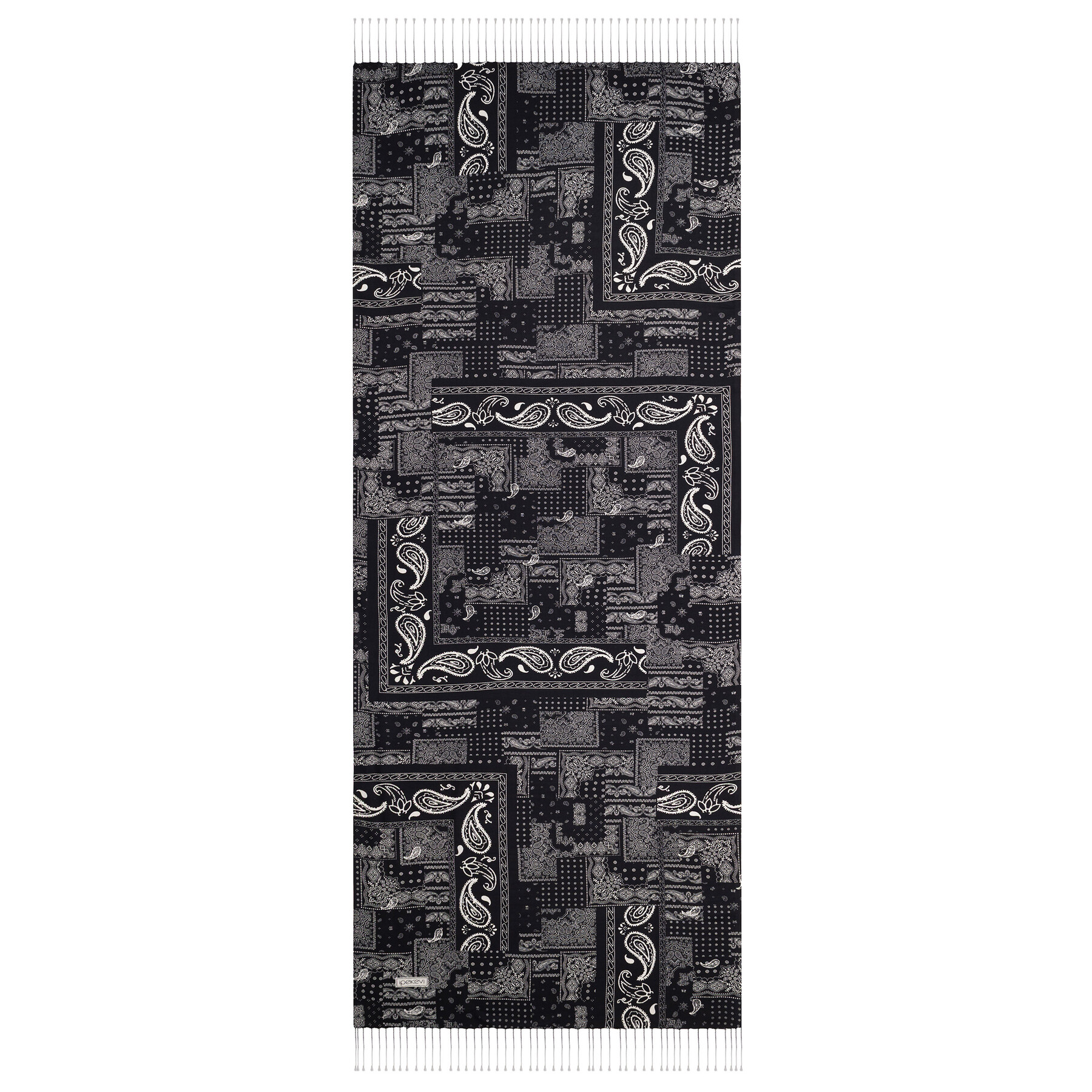 Black Patchwork Patterned Silk Scarf
