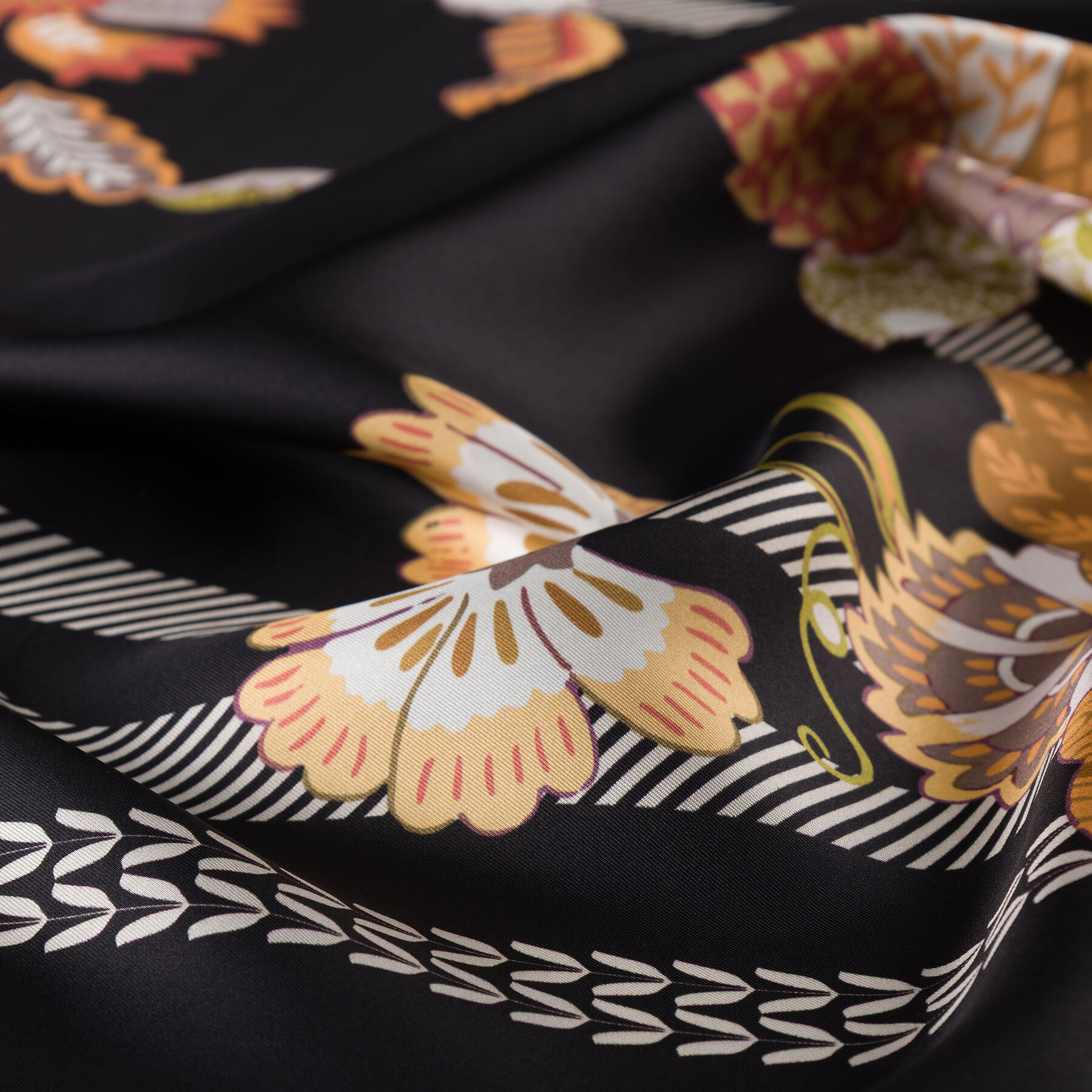 Indispensable twill Scarves, where silk texture meets colorful and flamboyant patterns, will be the most flamboyant part of your style.