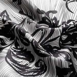 Black White Lacy Marigold Twill Silk Scarf