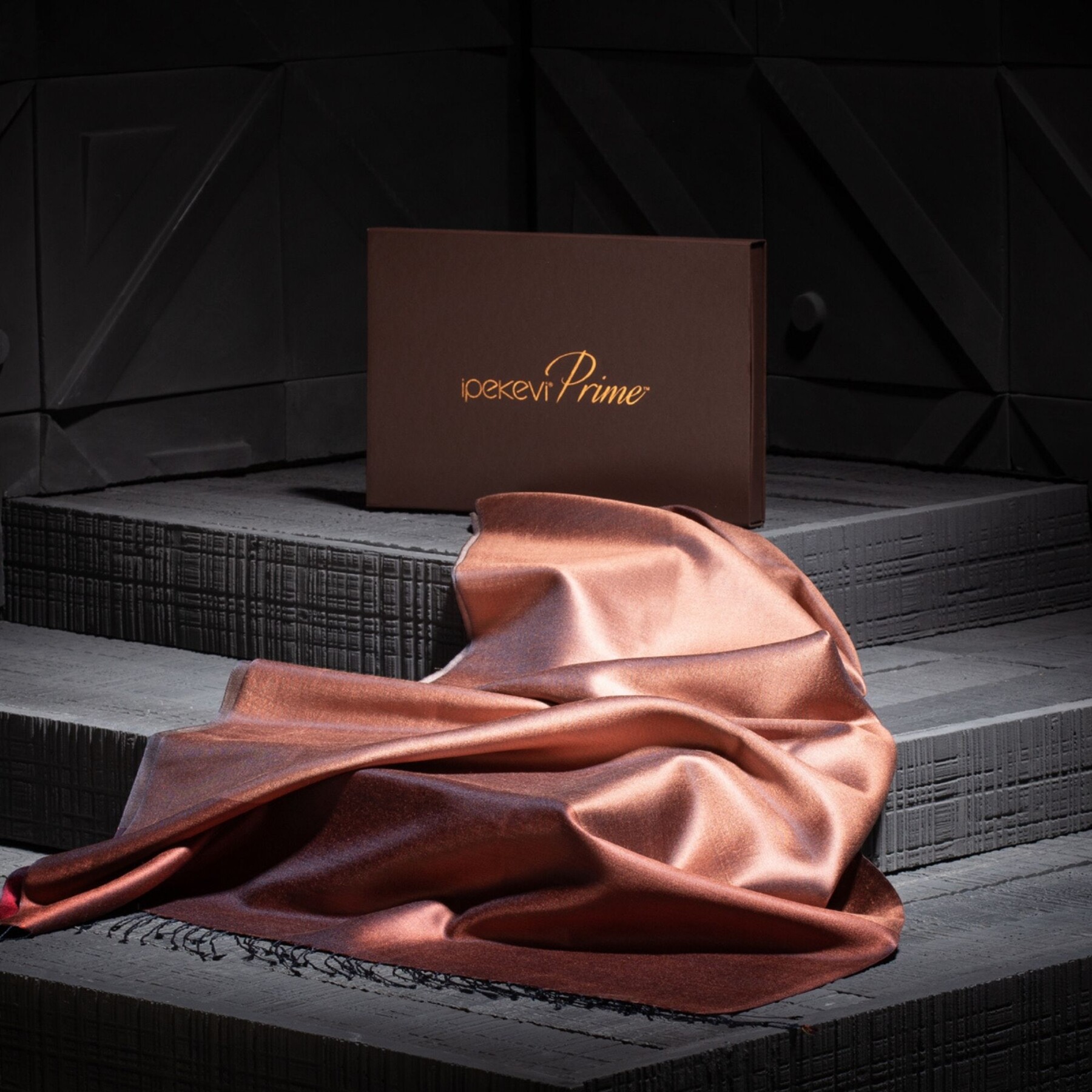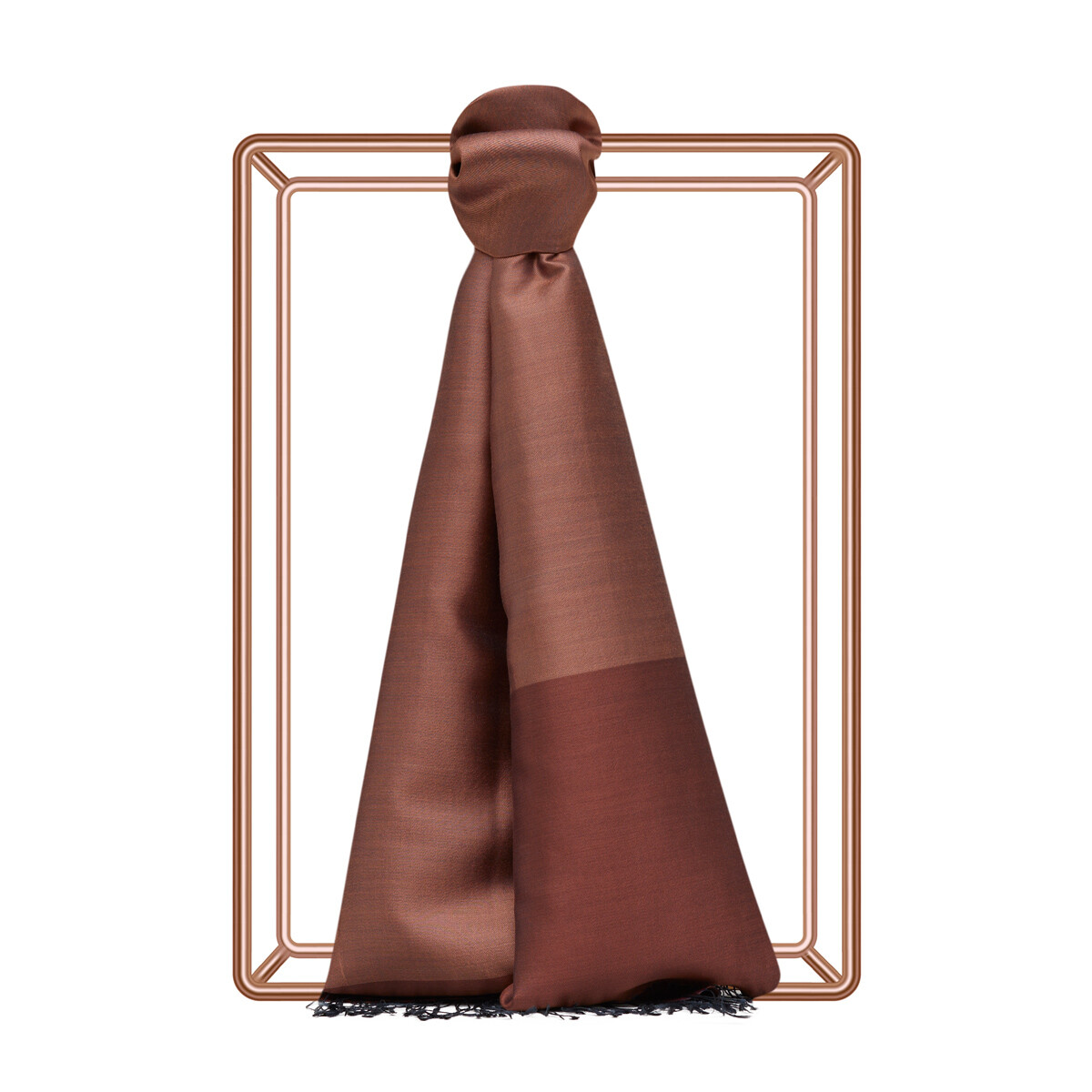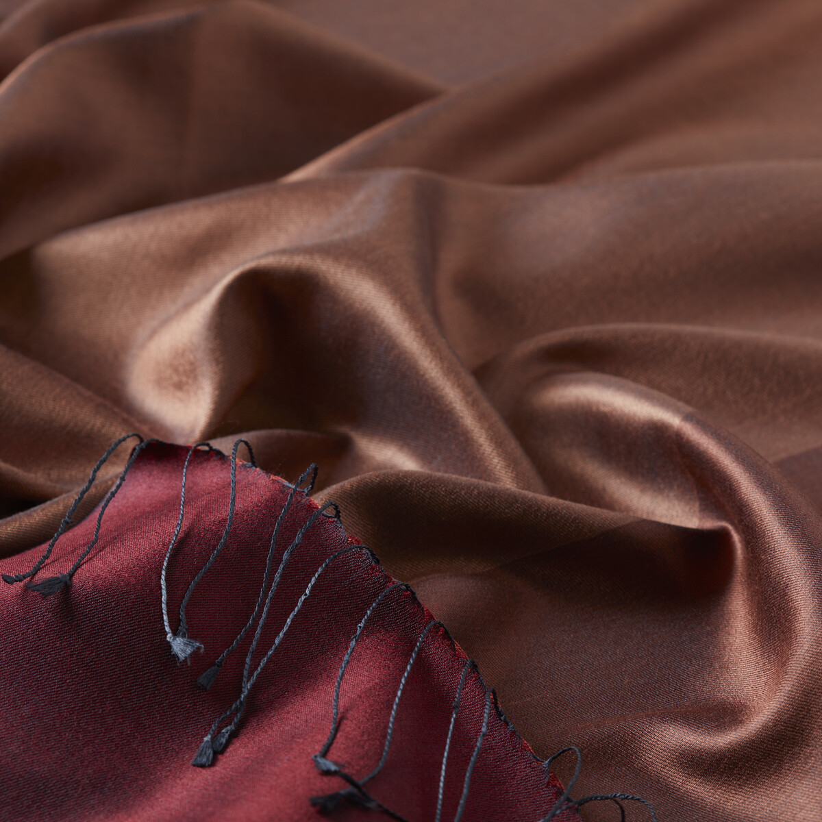 شال حرير فاخر ذو وجهين لون خمري ونحاسي