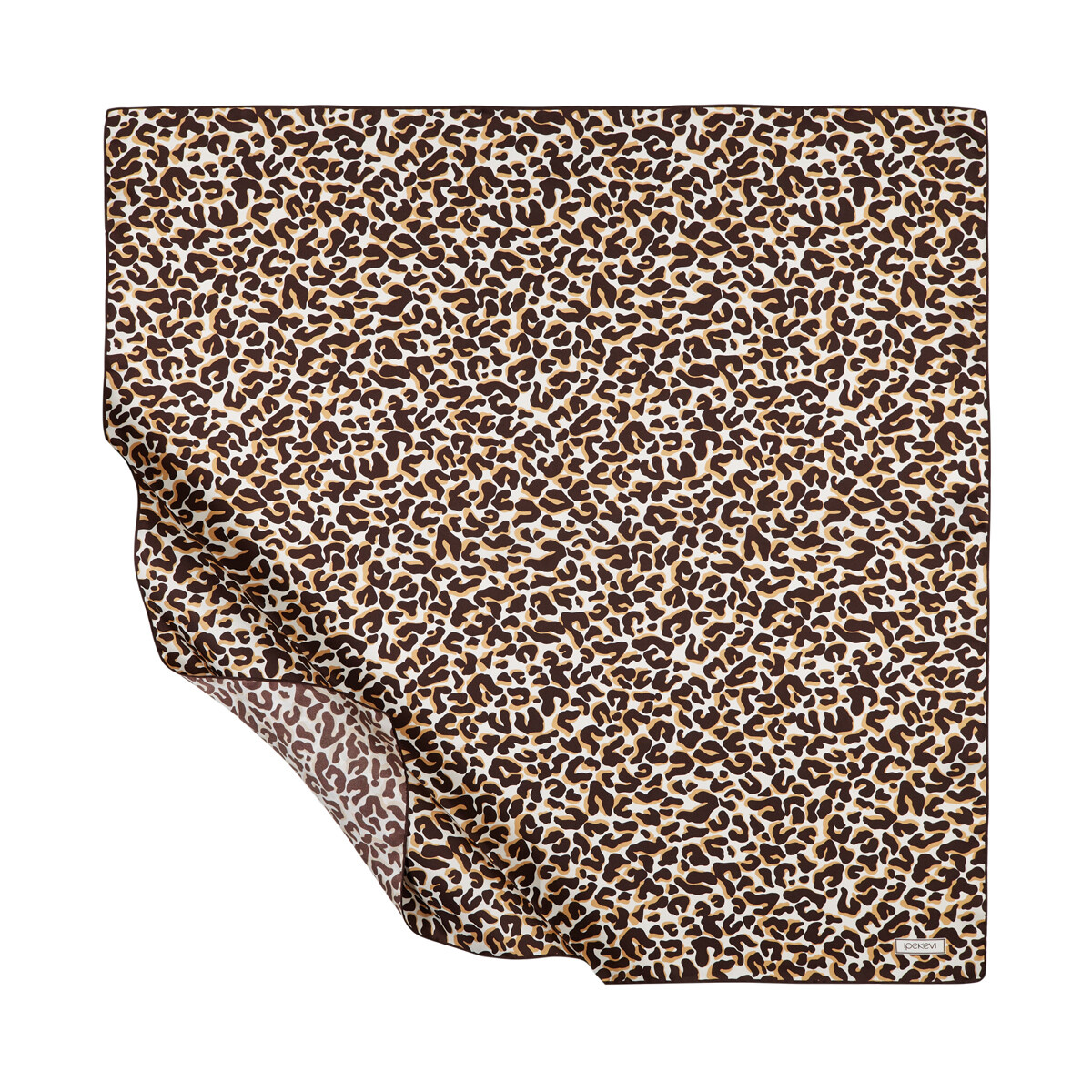 A white square silk scarf highlighted with our classic Leopard print in brown.
