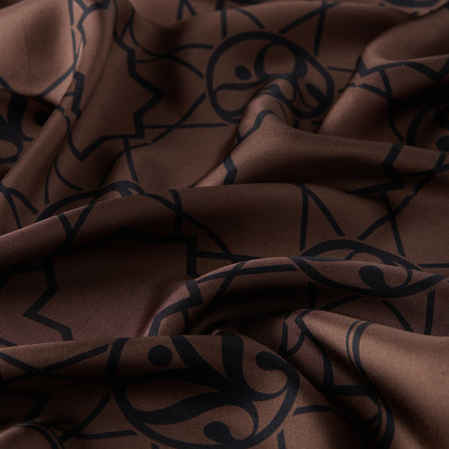 A brown square scarf in silk twill digitally printed with our iconic Seljuk monogram in black.