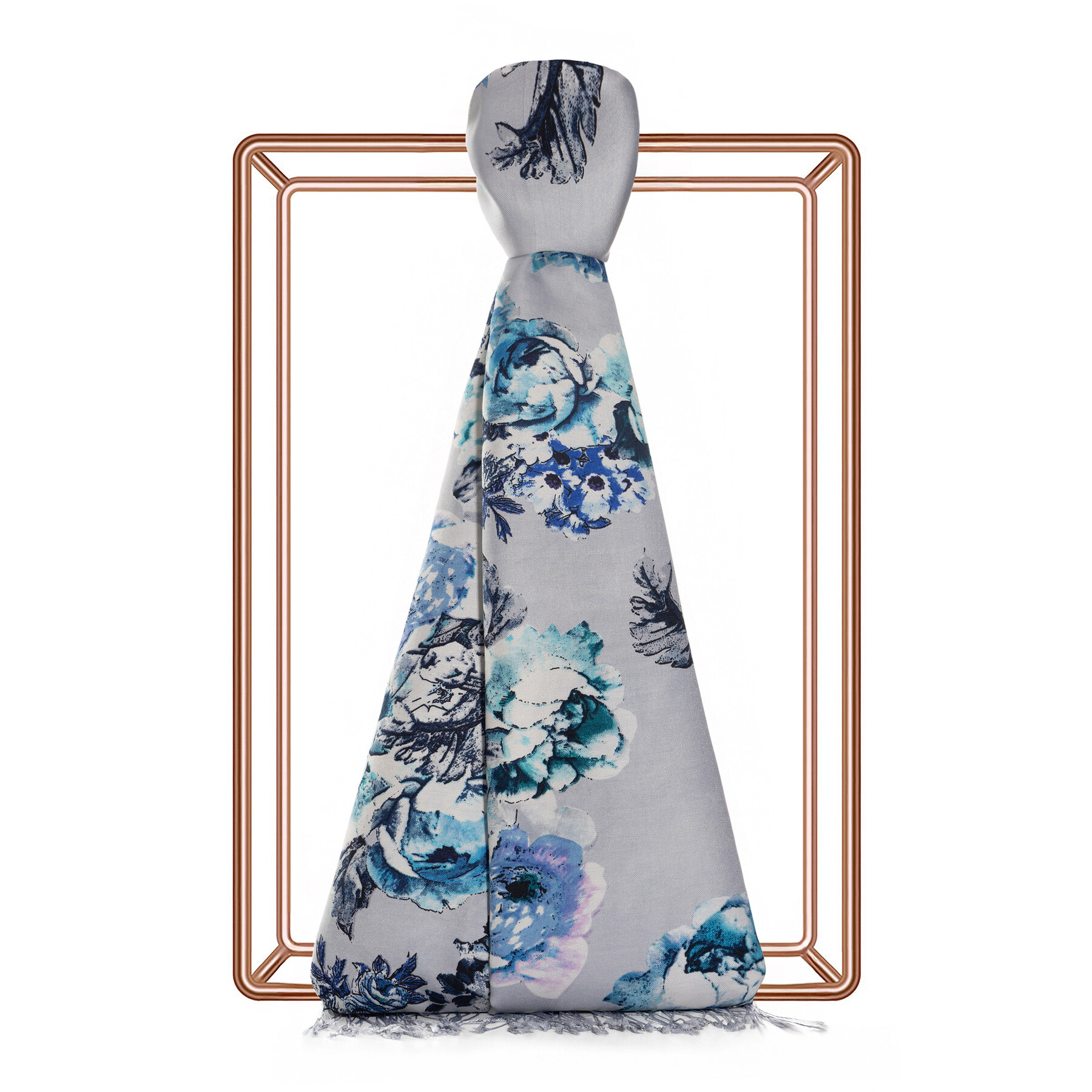 Buz Beyazı Gül Deryası Desenli İpek Şal