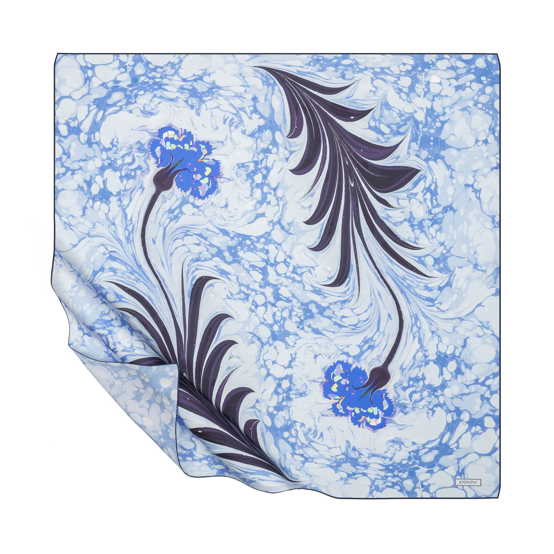 Buz Beyazı Karanfil Ebru Tivil İpek Eşarp