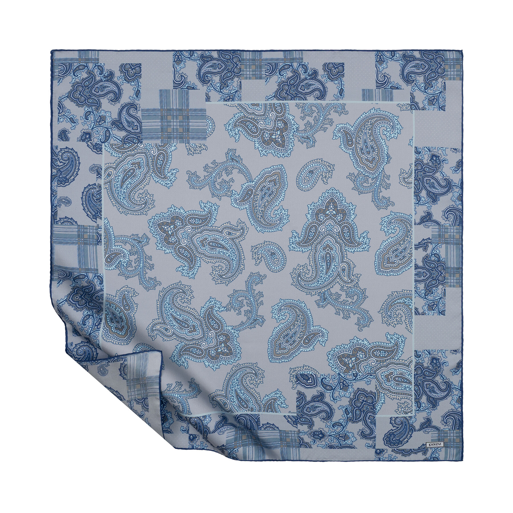 Buz Mavisi Patchwork Desenli Tivil İpek Eşarp