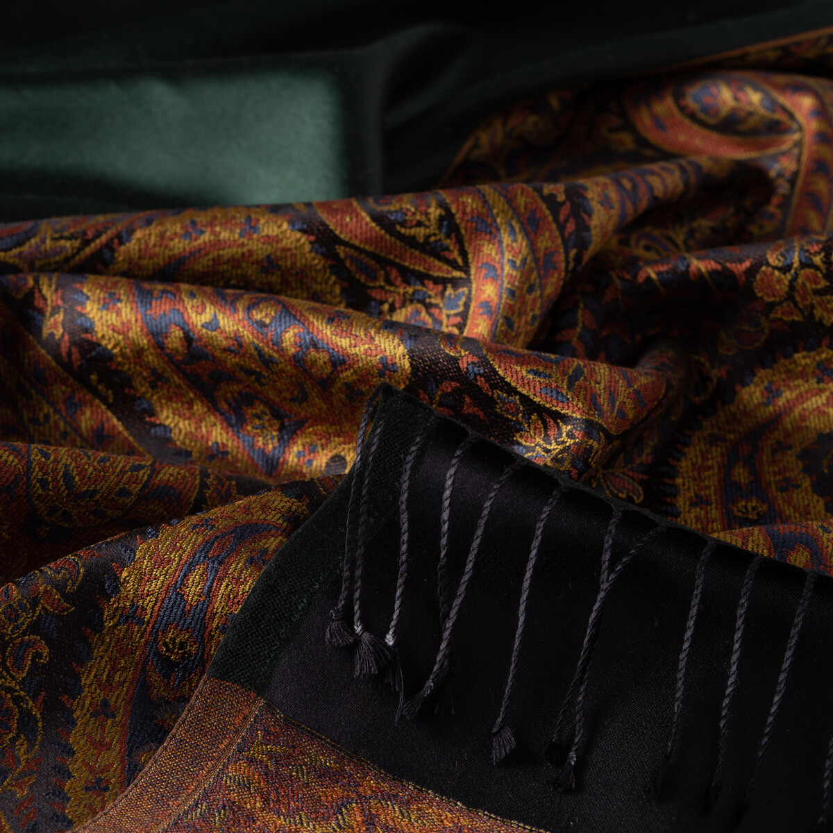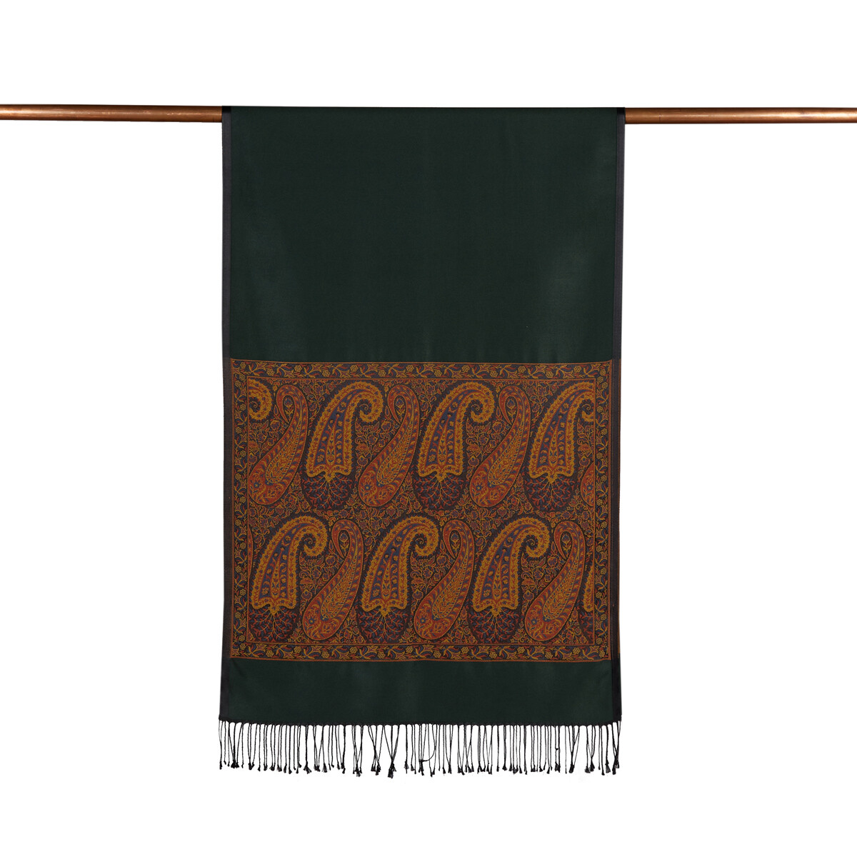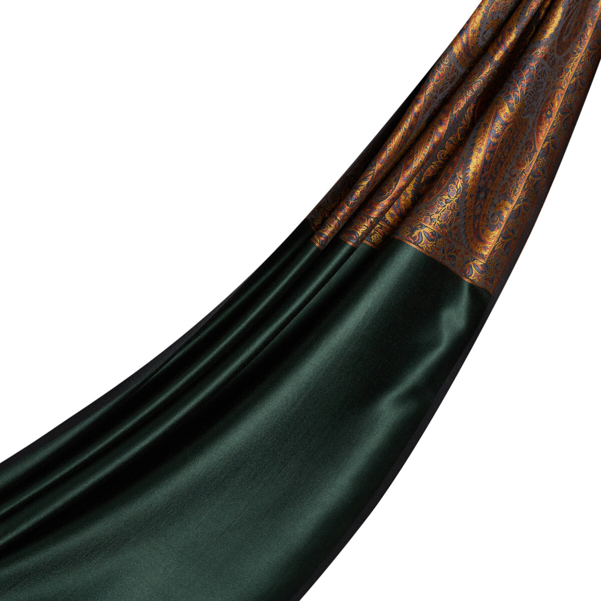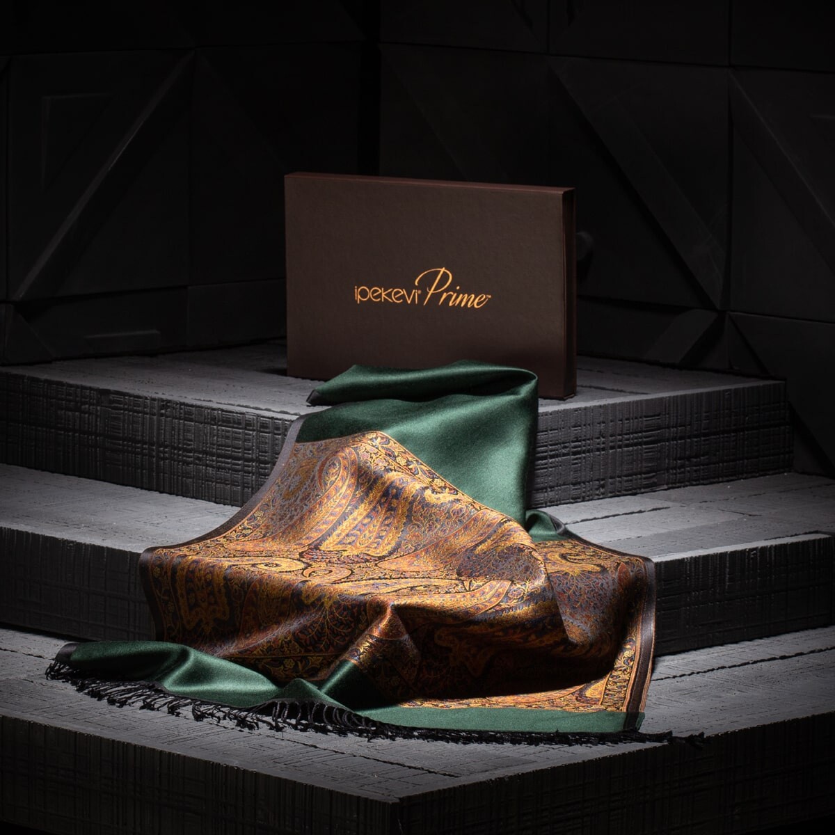 شال حرير جاكار فاخر منسوج يدويًا لون الأخضر الصنوبري