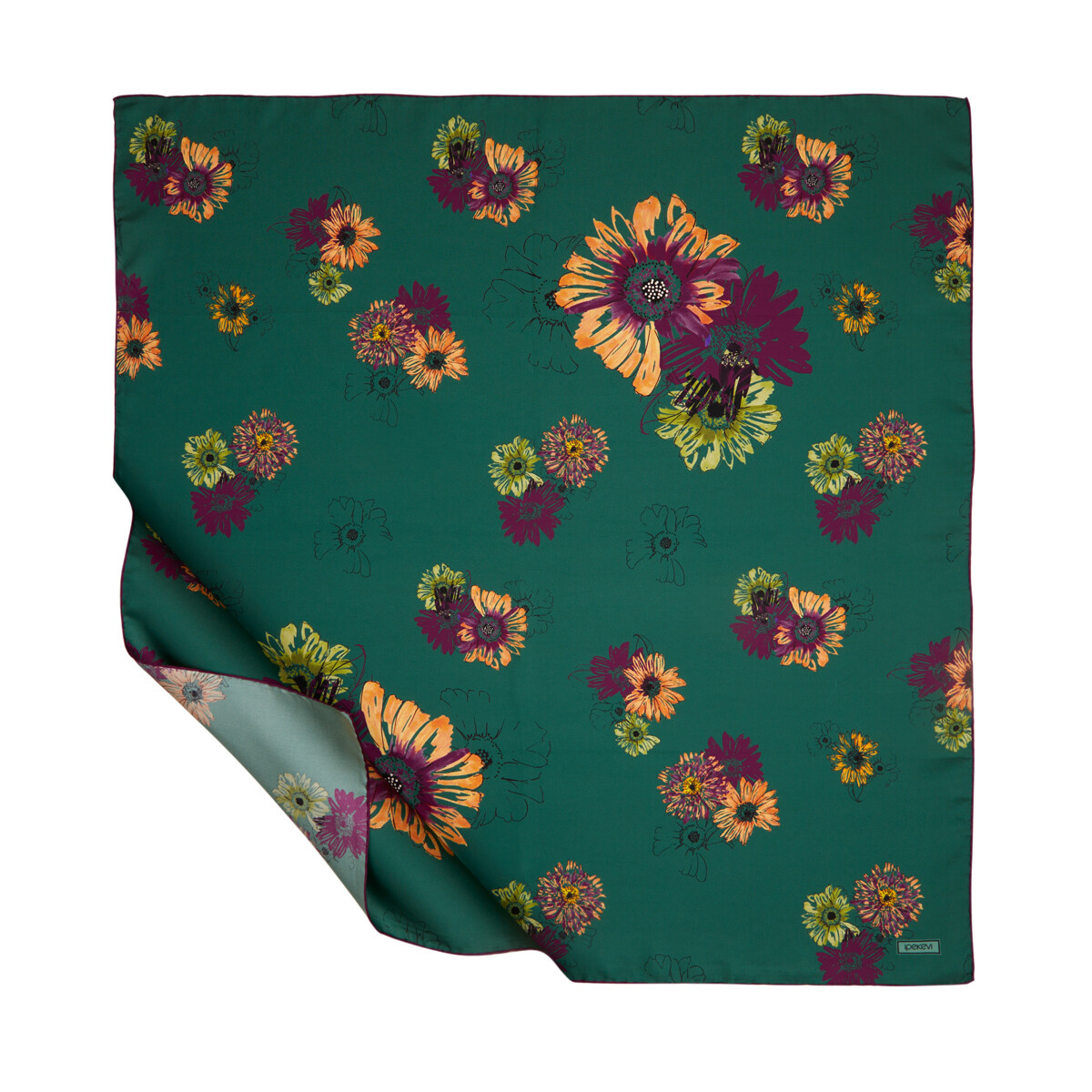 ايشارب حرير تويل تصميم ورود لون أخضر