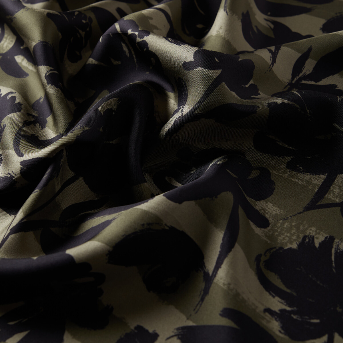 Ceviz Yeşili Begonia Desenli Tivil İpek Eşarp