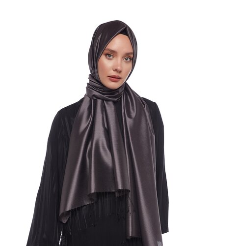 شال حرير سادة لون رمادي
