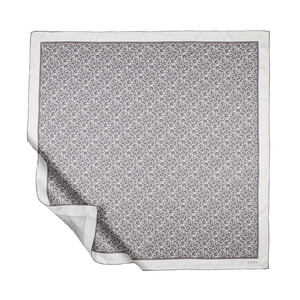 A charcoal square scarf in silk twill digitally printed with our unique Typo Pattern monogram in white.
