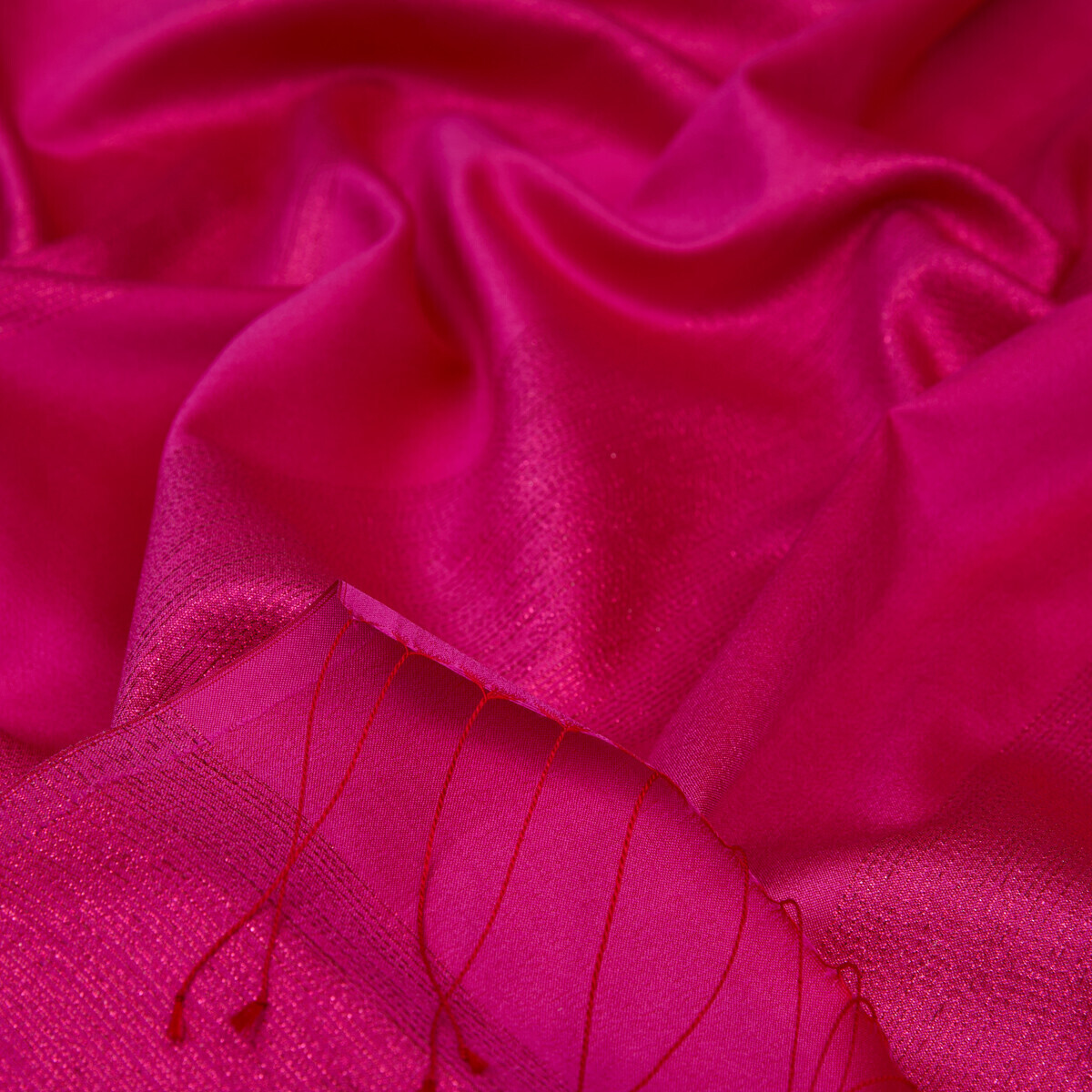 A plain Cherry silk scarf highlighted with block stripes of lurex in red.