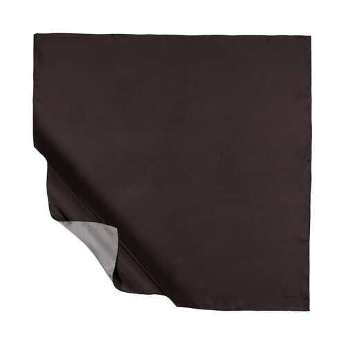 A chestnut square scarf in silk twill, featuring our logotype at the bottom right corner.