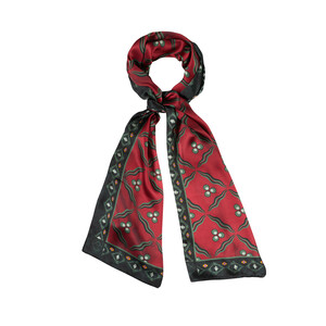 A silk twill scarf digitally printed with the bold Cintemani motif.