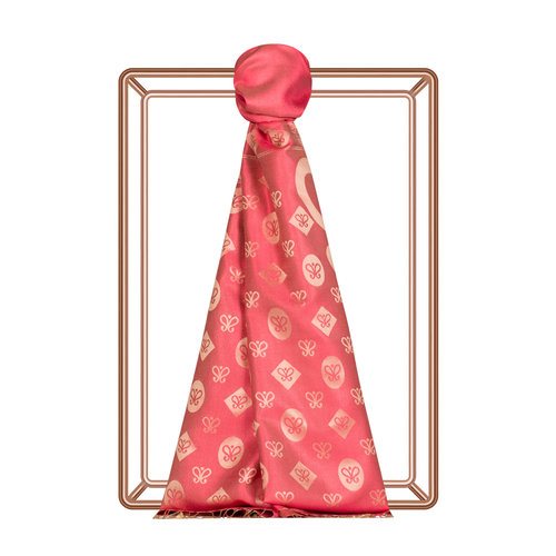 A reversible silk scarf in coral, finished with our classic monogram design at both ends.
