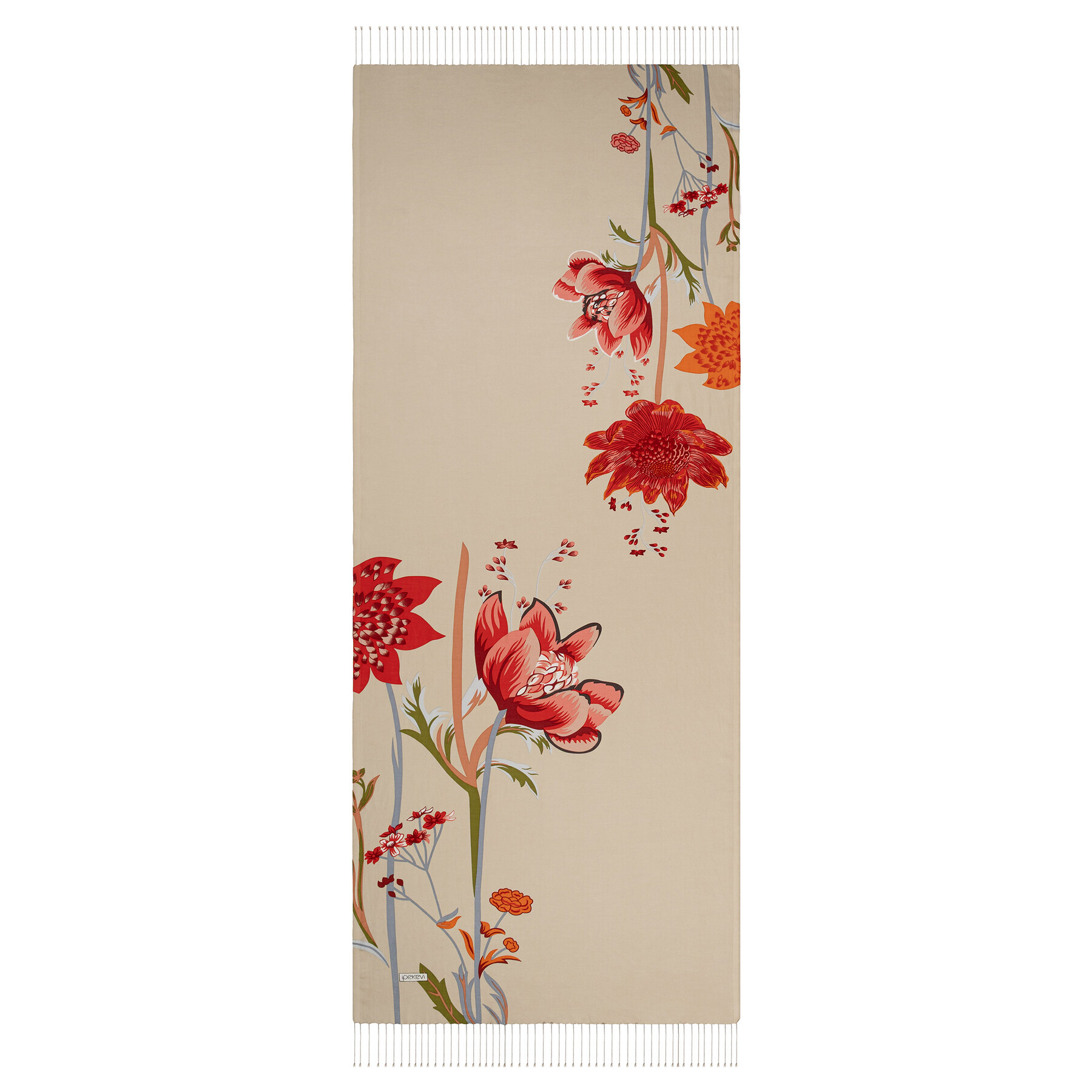 Cream Amaryllis Print Silk Shawl