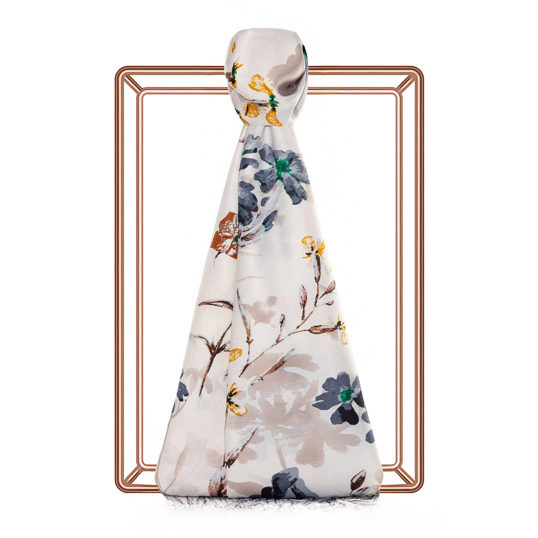 A cream silk scarf featured with our delicate Clover Garden print throughout.