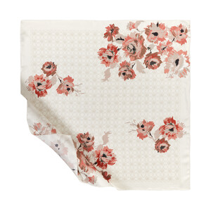 A cream silk twill scarf featured with our romantic Peony print and our Seljuk monogram in miniature form.