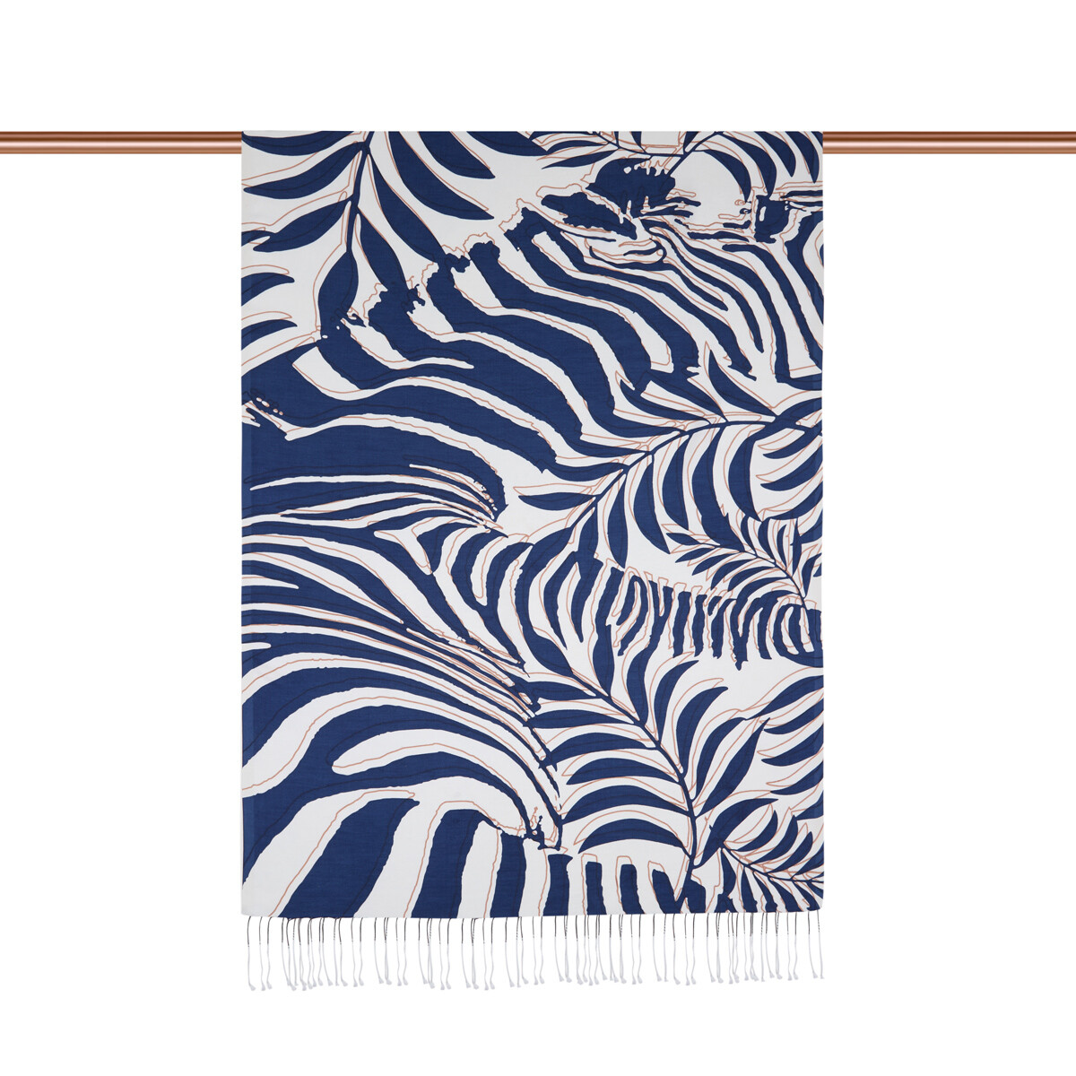 شال حرير بتصميم نخيل لون كحلي غامق