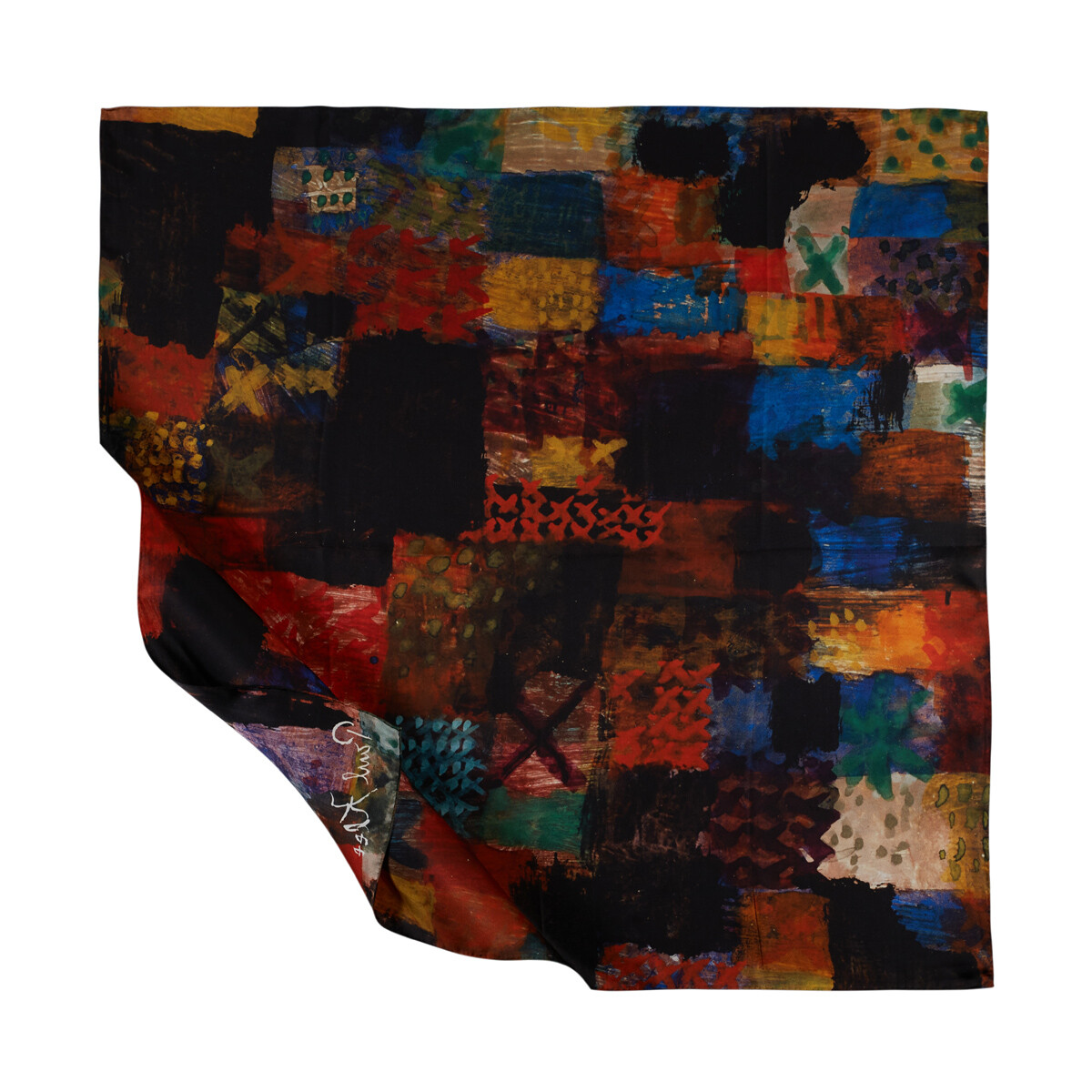 Klee Derin Merhamet adlı eserinde küçük noktalar ve çapraz dikiş desenleri ile birbirine teğellenmiş kareler ve dikdörtgenlerle neşeli bir patchwork oluşturmuştur.Uzun denemeler sonucunda renk ve renk uyumu konusunda uzmanlaşan Klee, renk paletlerini kullanarak soyut resimler meydana getirdi. Eserlerindeki şiirsellik, müzik, notalar ve hayaller ayırt edilebilecek kadar belirgindi.%100 İpek90x90 cmArt Koleksiyonu