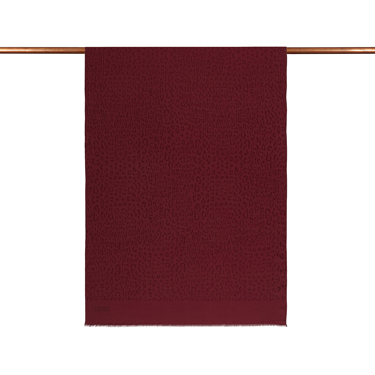 Dört Mevsim Bordo Leopar Desenli Monogram Şal