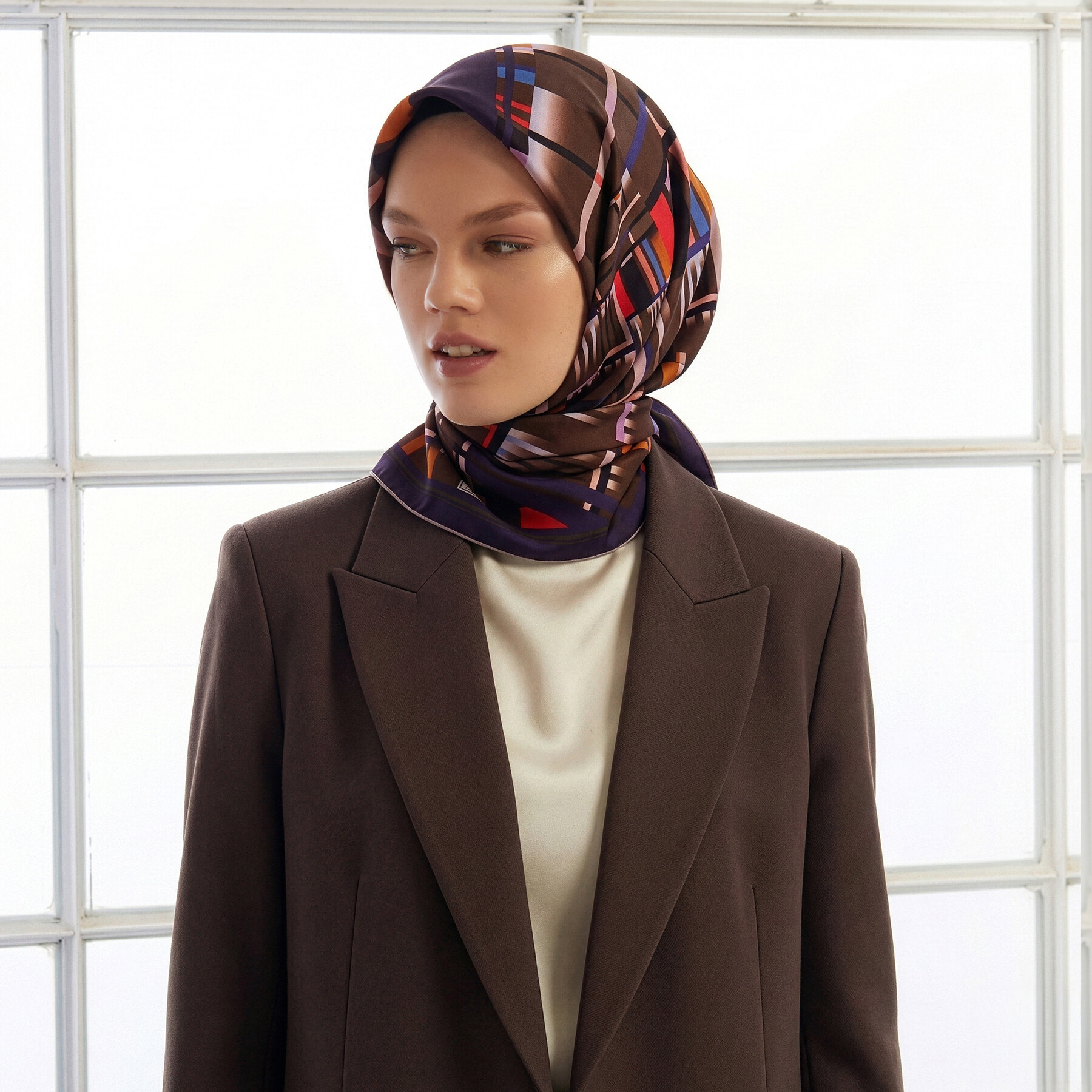 استمتع بالأناقة والفخامة مع هذا الإيشارب الحريري الفاخر الذي يتميز بتصميمه الهندسي العصري. يتميز هذا الإيشارب بجودة عالية وتصميم فريد يجمع بين الألوان الراقية والخطوط الهندسية المتناغمة، مما يجعله الاختيار المثالي لإكمال إطلالتك اليومية أو لإضافة لمسة من الفخامة لمناسباتك الخاصة. الخامة: 100% حرير طبيعي ناعم، يمنحك إحساسًا مريحًا وخفيفًا على بشرتك. التصميم: نقشة هندسية مميزة تتألف من خطوط منحنية بألوان زاهية تتداخل بانسيابية على خلفية راقية، مما يضفي مظهرًا عصريًا وأنيقًا. الحجم: 90x90 سم , بحواف ملفوفة يدوياً , قياس مثالي يتيح لك ارتداءه بطرق متعددة، سواء كإيشارب للرأس، أو كوشاح حول العنق، أو حتى كإضافة مميزة لحقيبتك. الاستخدام: مناسب لجميع الفصول والمناسبات، يمكنك تنسيقه بسهولة مع مختلف أزيائك لإطلالة أنيقة ومتكاملة.