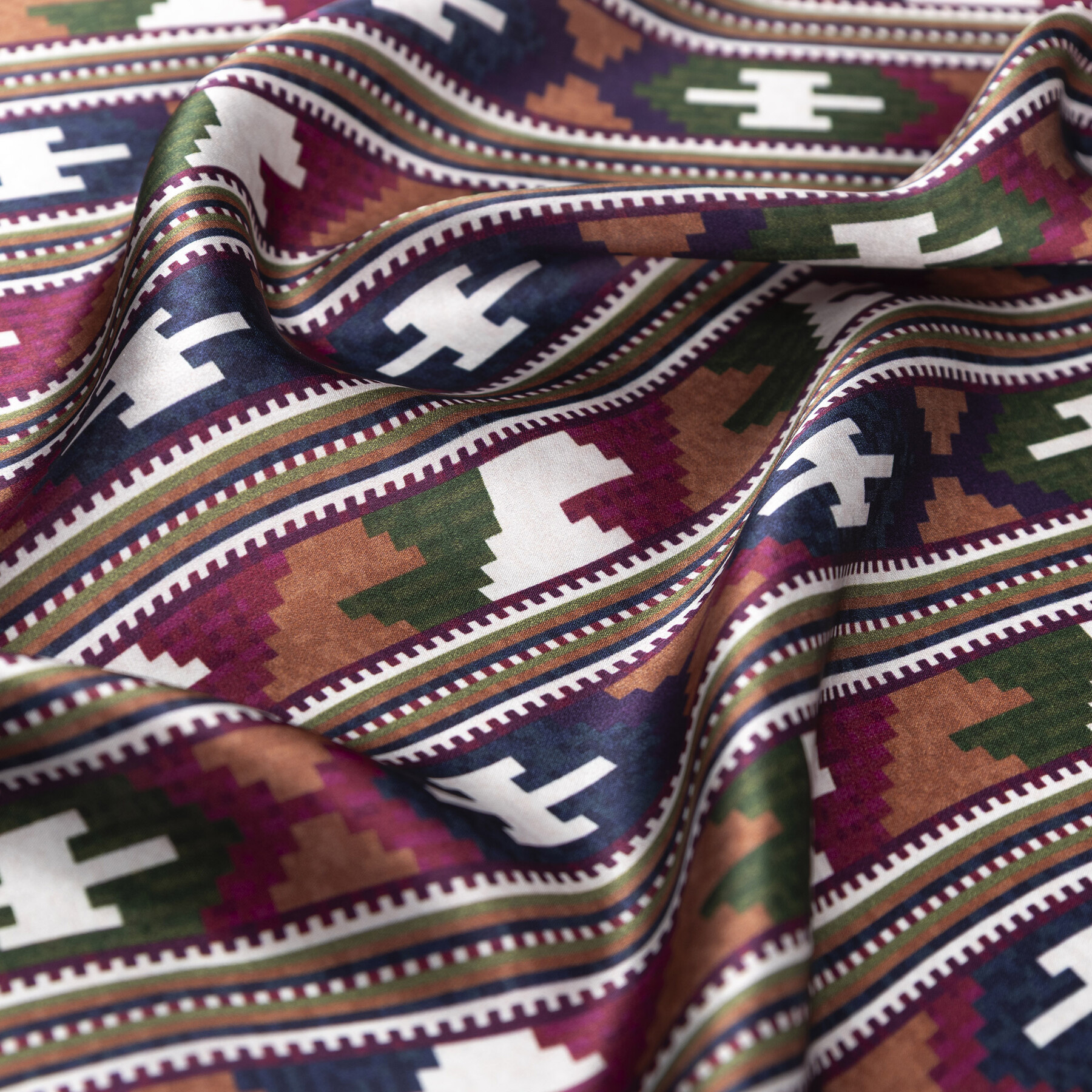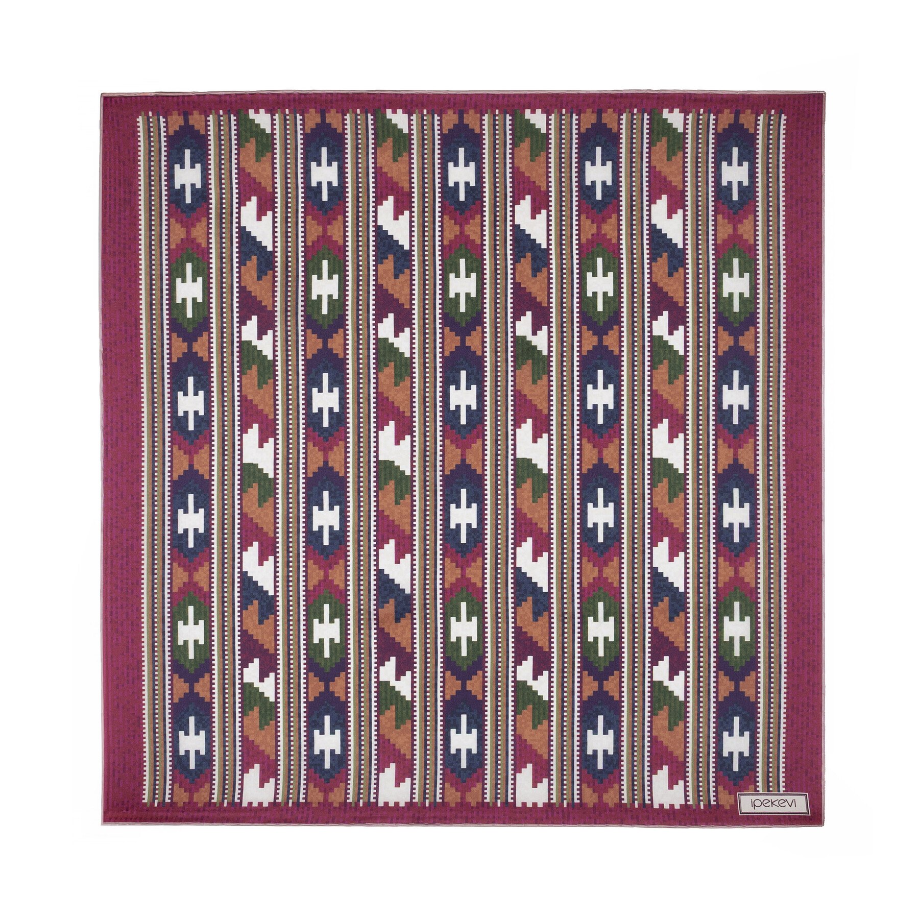 Anadolu giyim kültürünün en köklü unsurlarından biri olan kuşak, geçmişin anlam yüklü motiflerini zarif bir yorumla günümüze taşır. Birlik, düzen ve sürekliliği simgeleyen geleneksel kuşak desenleri, bu eşarp üzerinde tarihî bir kimlik ve estetik bir derinlik kazanır.