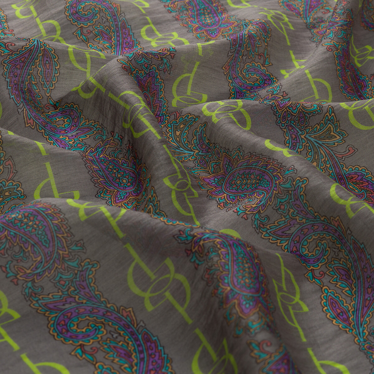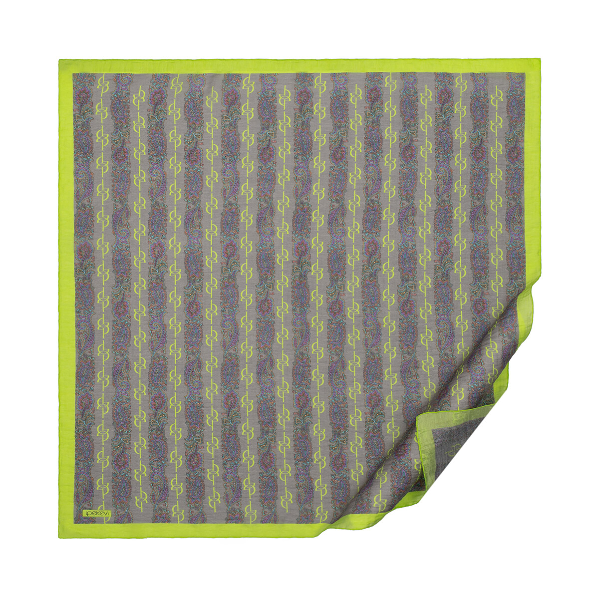 Fıstık Yeşili Gri Monogram Desenli Tensel Eşarp