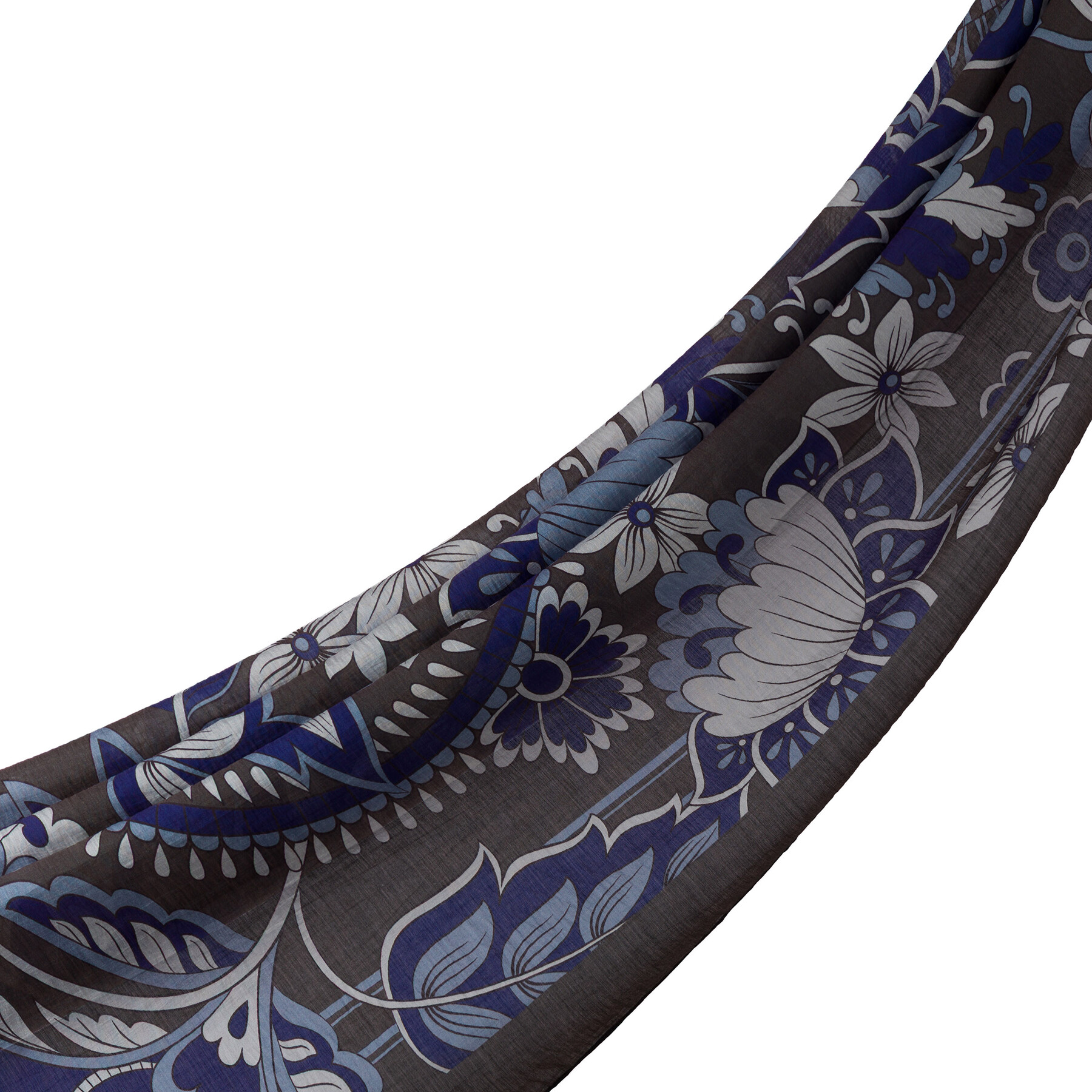 Füme Lacivert Saray Sarmaşığı Desenli Tensel Şal