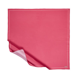 A fuchsia square scarf in silk twill, detailed with a thin frame border.