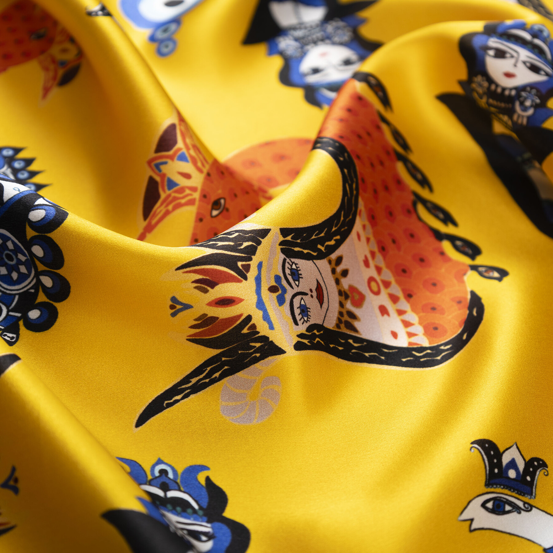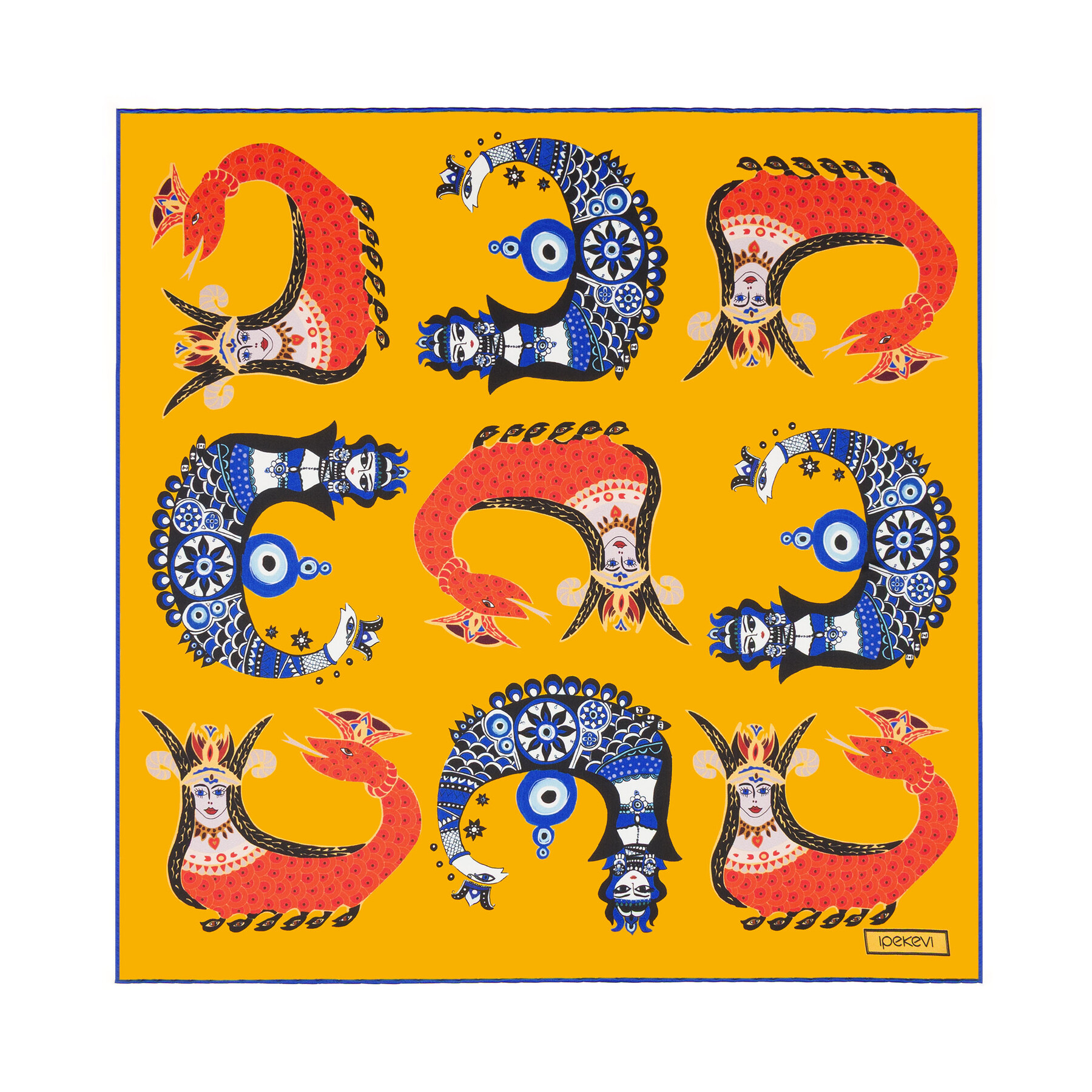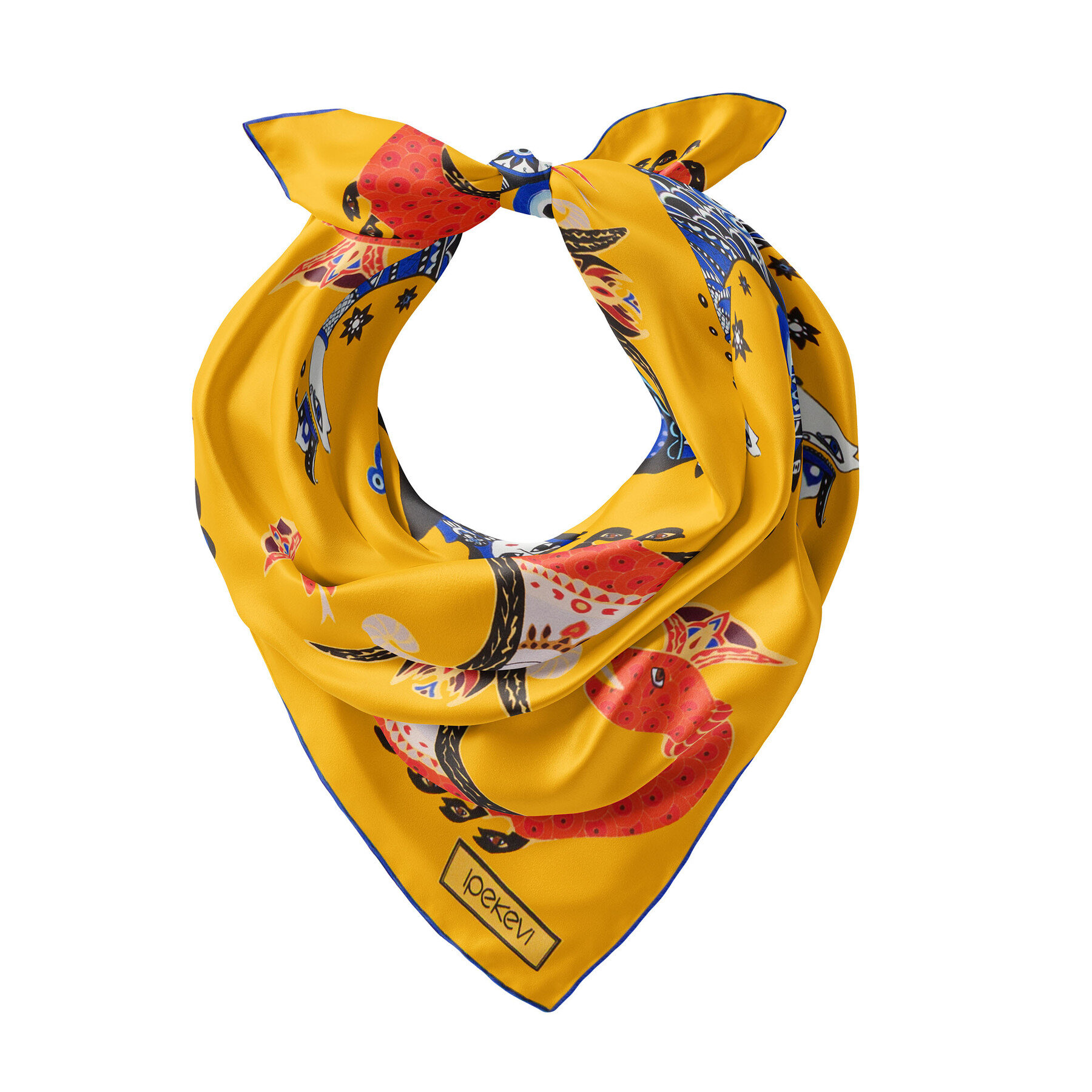 Efsanelerden ilham alan desen detayları, ipeğin doğal ışıltısıyla buluşarak sofistike bir görünüm sunan, zarafeti ve mistik dokunuşu bir araya getiren özel bir aksesuar.