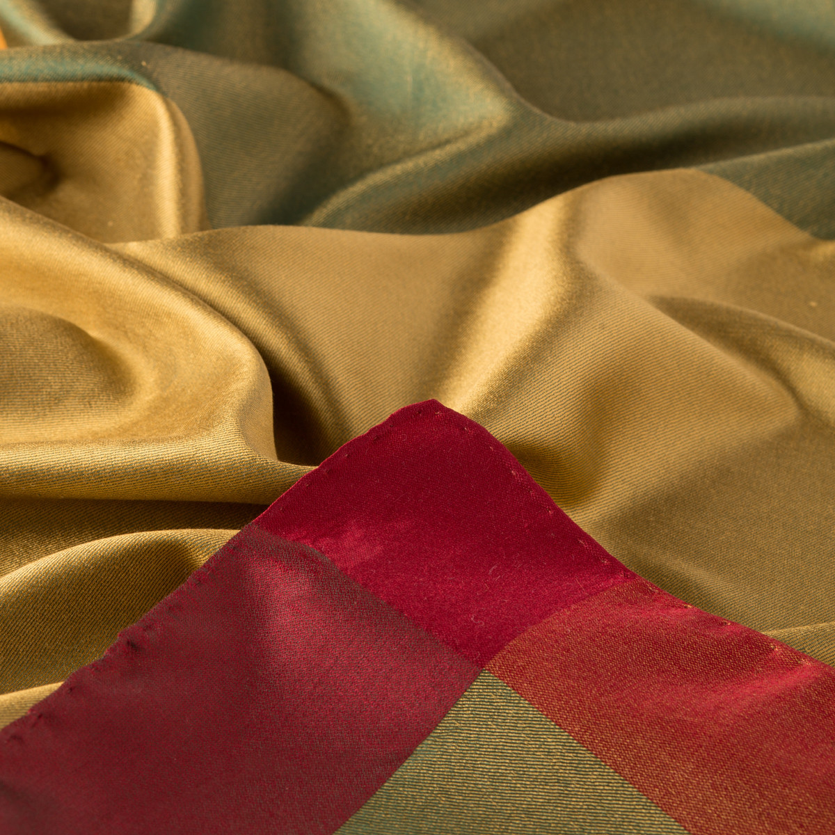ايشارب حرير تصميم مربعات لون ذهبي وأخضر