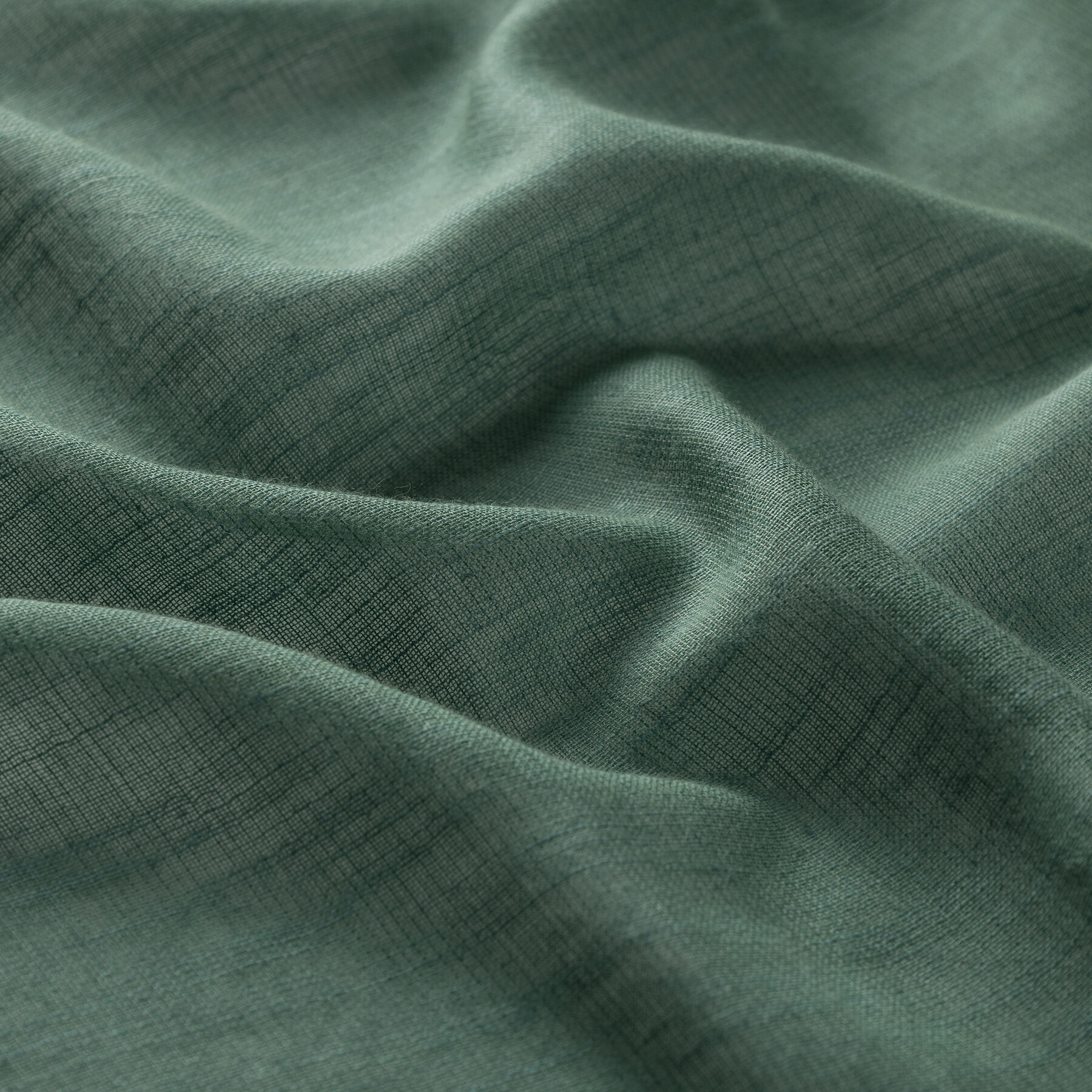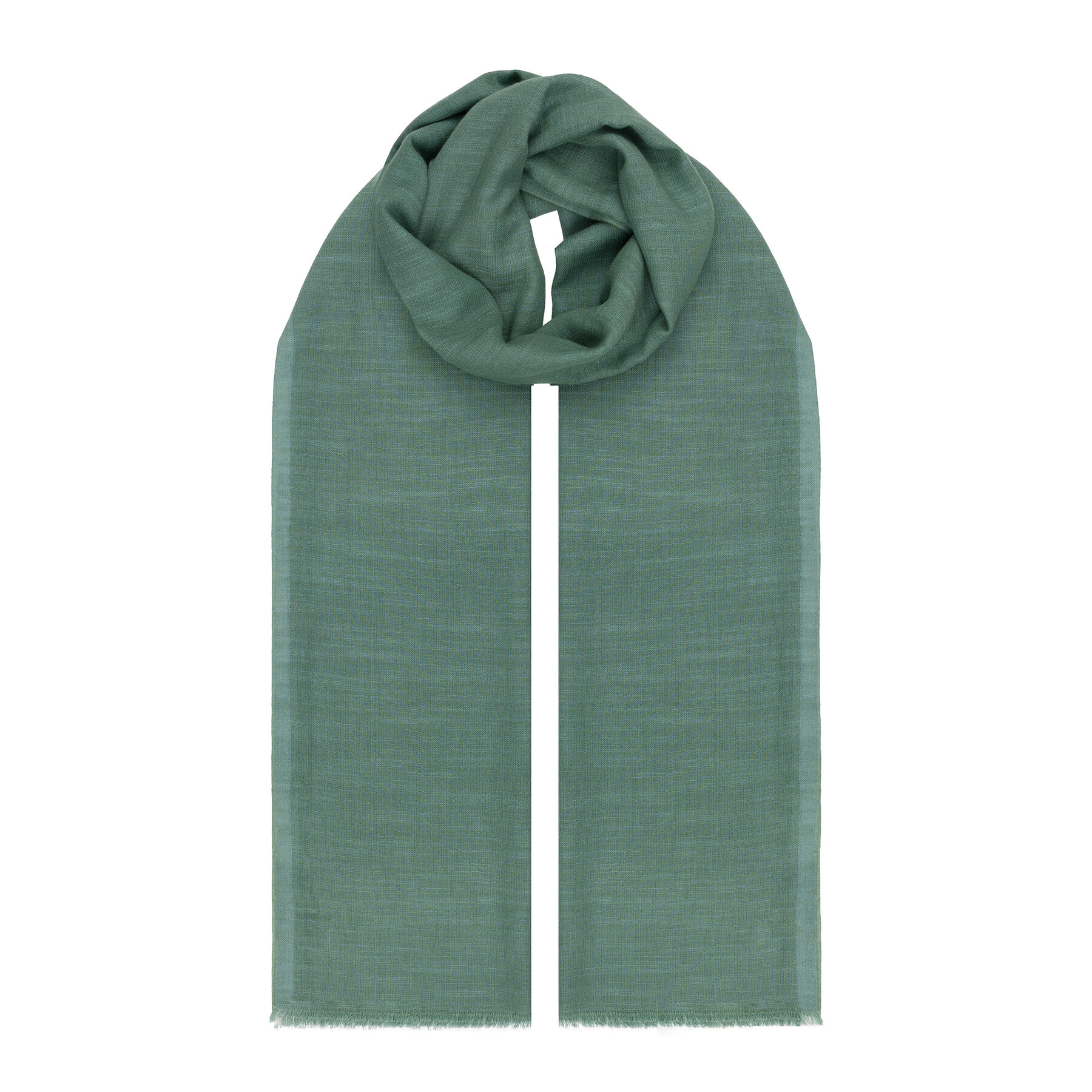 A plain green scarf crafted from a blend of cotton and mulberry silk.