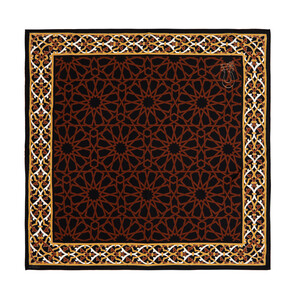 A satin silk pocket square, digitally printed with traditional Turkish motifs symbolizing the Green Tomb.